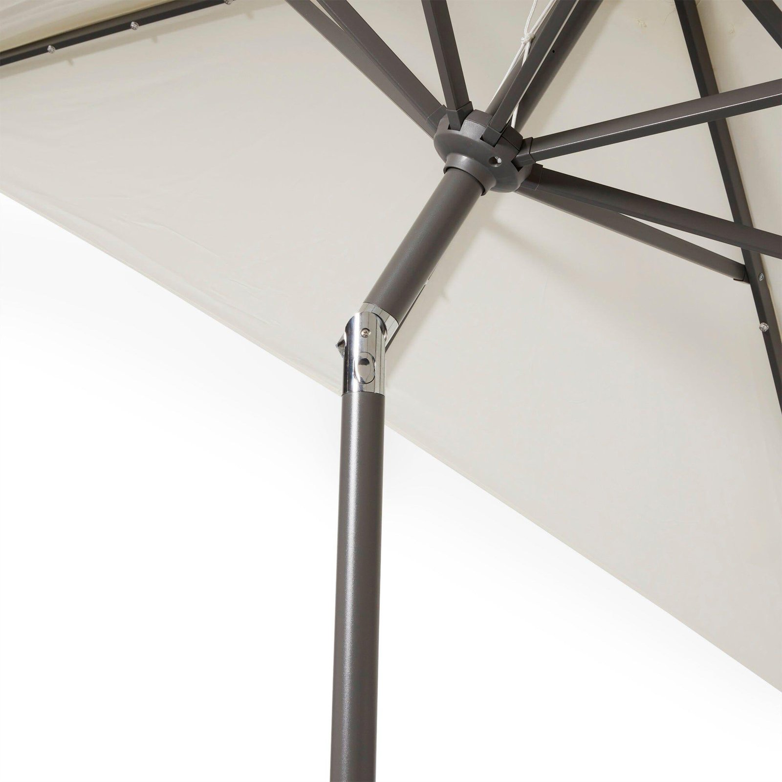 - Parasol Design Features – 180g Cream Fabric with tilt mechanism and 22 led lights.