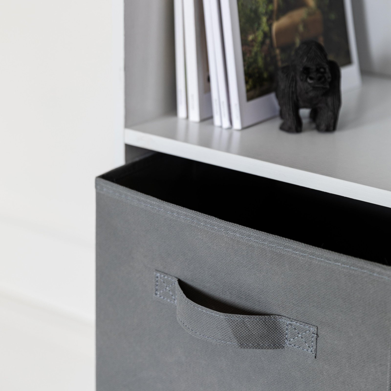 Cara 6 Cube Bookcase Ladder Storage Unit – Chalk White with Grey Boxes