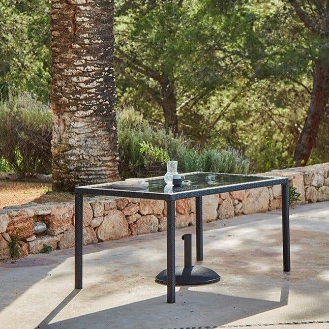- Set Includes – Marston 6-seater rattan rectangular garden dining table with 6 Marston stackable garden dining chairs, cream led parasol, parasol base and parasol rain cover.