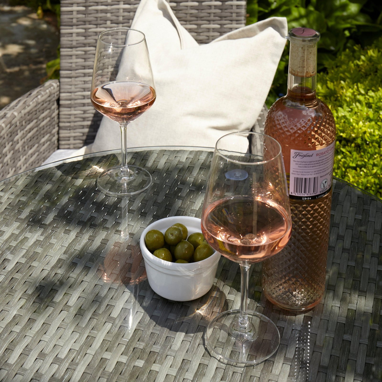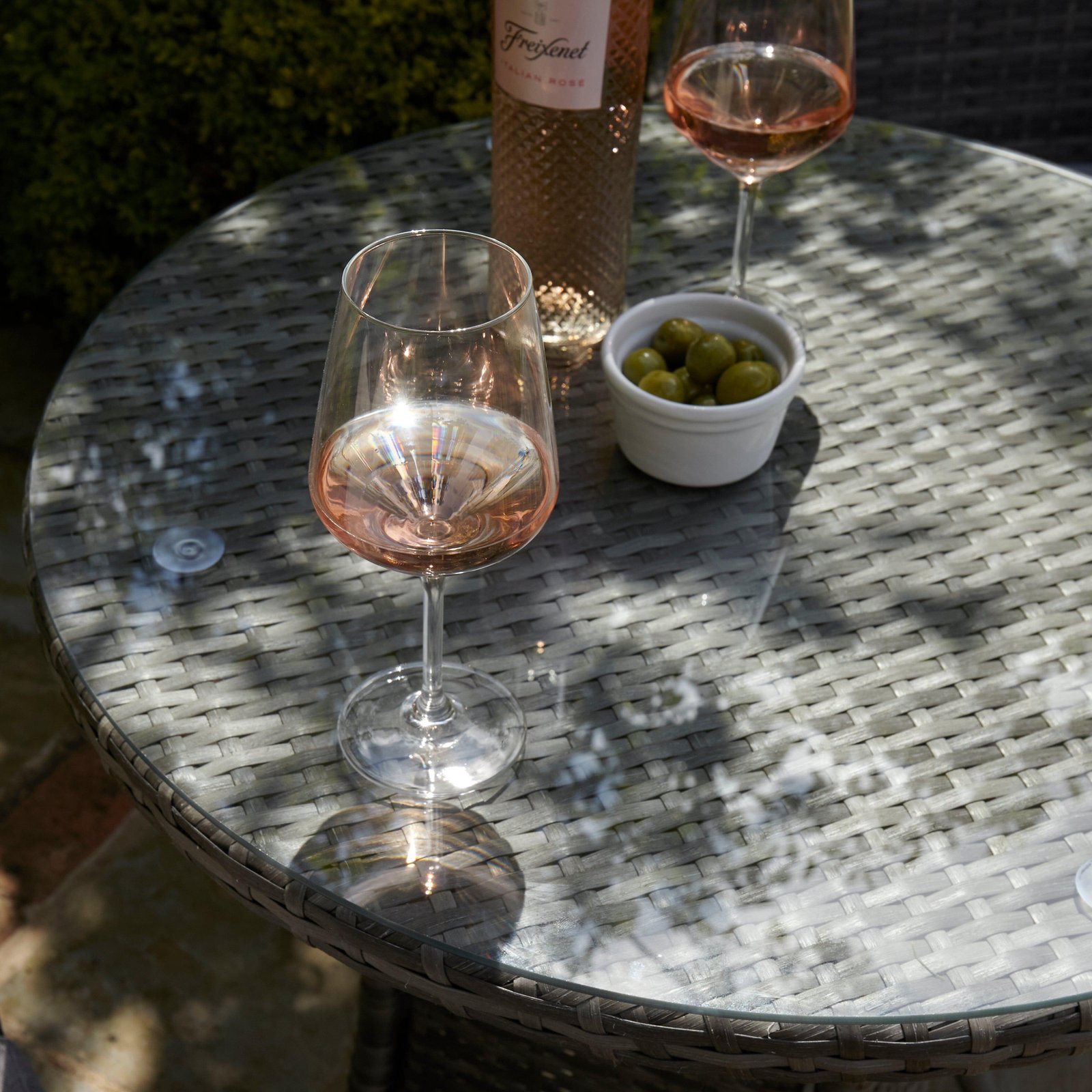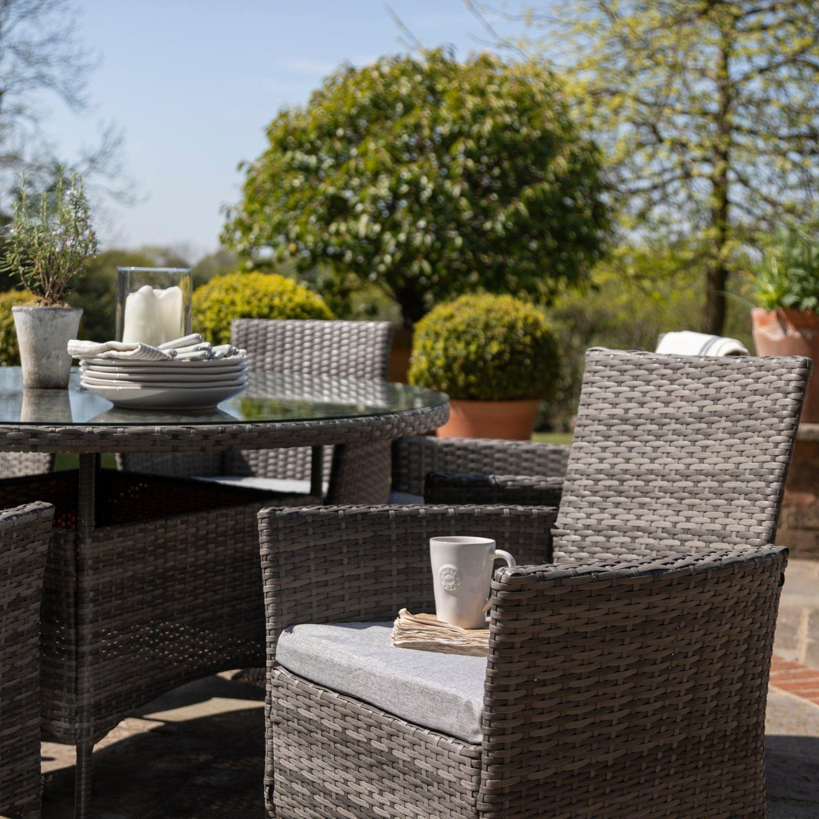 - Tempered glass top table with a parasol hole (parasol must be less than 38mm to fit)