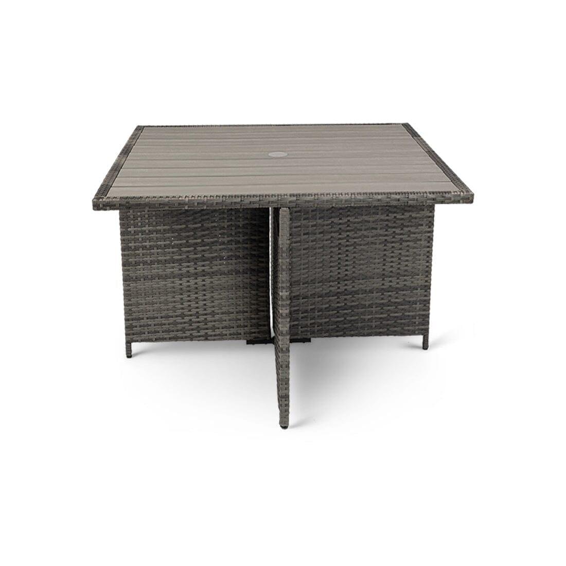 - What’s included – Cube 8 Seater rattan dining table set in grey rattan with polywood top. Complete with grey parasol, parasol rain cover & parasol base.