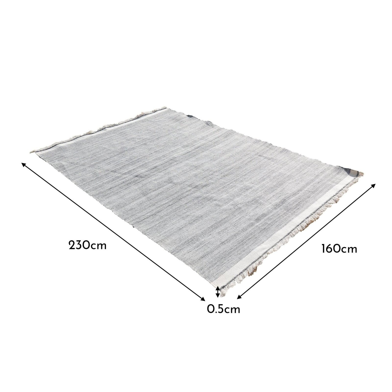 The Ardwell 160x230cm PET outdoor rug boasts a mist grey design with fringing, enhancing the texture and modern appeal of your living area. Crafted from PET fibers recycled from plastic bottles, this sustainable rug is durable and easy to clean, ensuring long-lasting premium quality.
