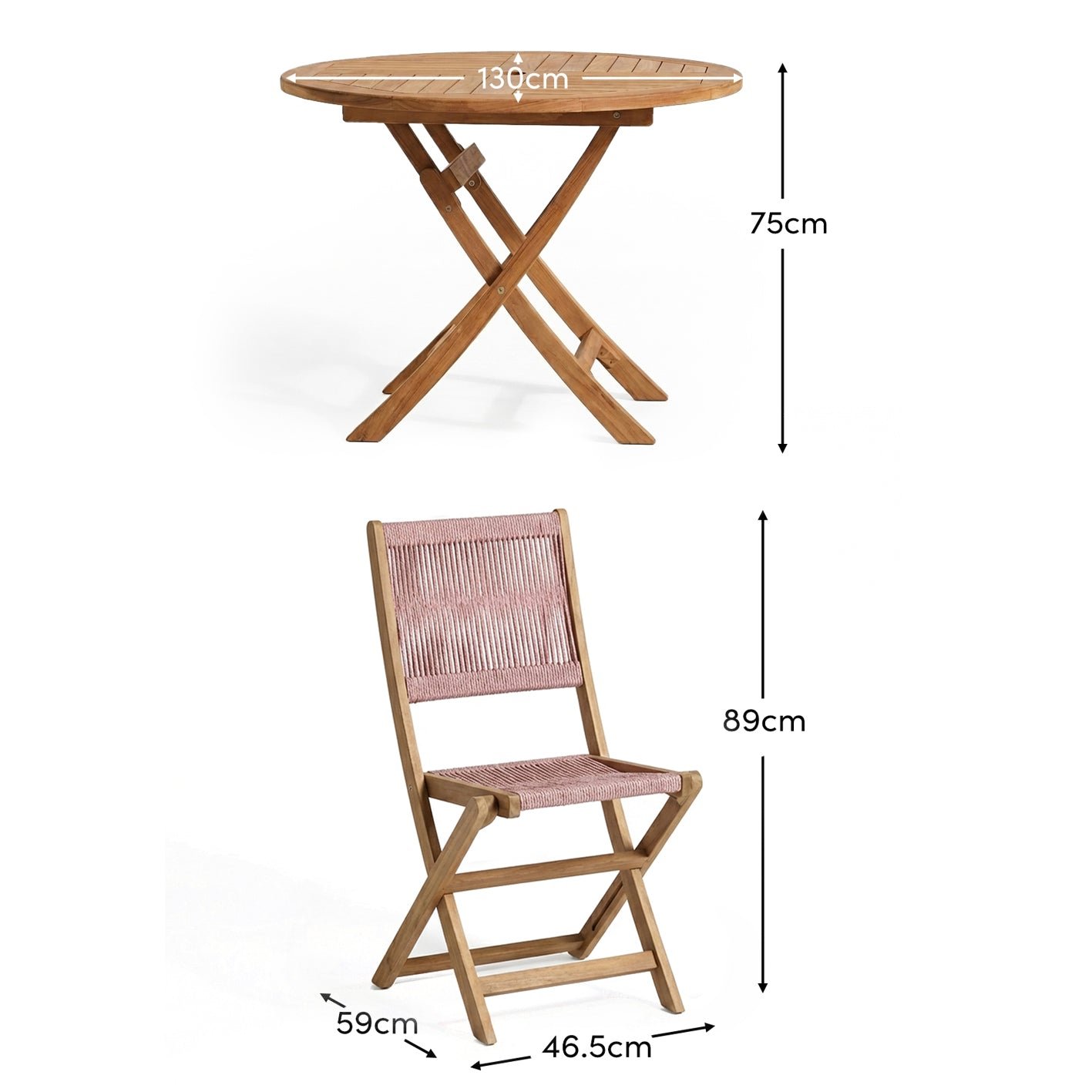 The Ashby and Cove outdoor dining set is the perfect way to add a touch of colour to your garden this summer. This classic dining set features the Ashby round folding table crafted from natural acacia wood and features 6 Cove folding chairs. The beautiful Cove folding chairs are crafted from acacia wood and with a mottled pink rope seat and back.