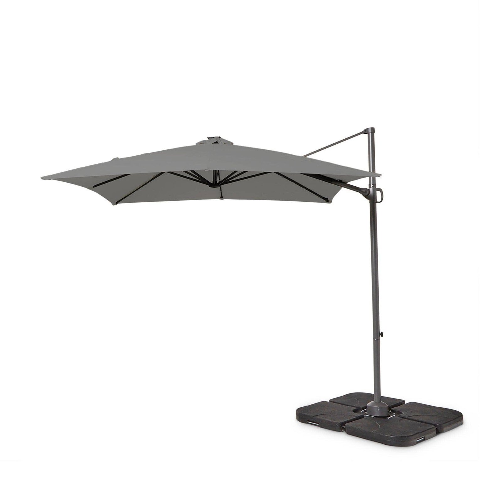 - Parasol Base – Quartered base made from durable plastic – can be filled with water or sand resulting in an approximate 60kg or 80kg weight so you can be confident your parasol is well anchored.