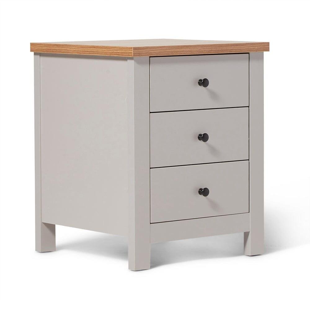 Bampton 3 Drawer Bedside Table – Stone Grey
