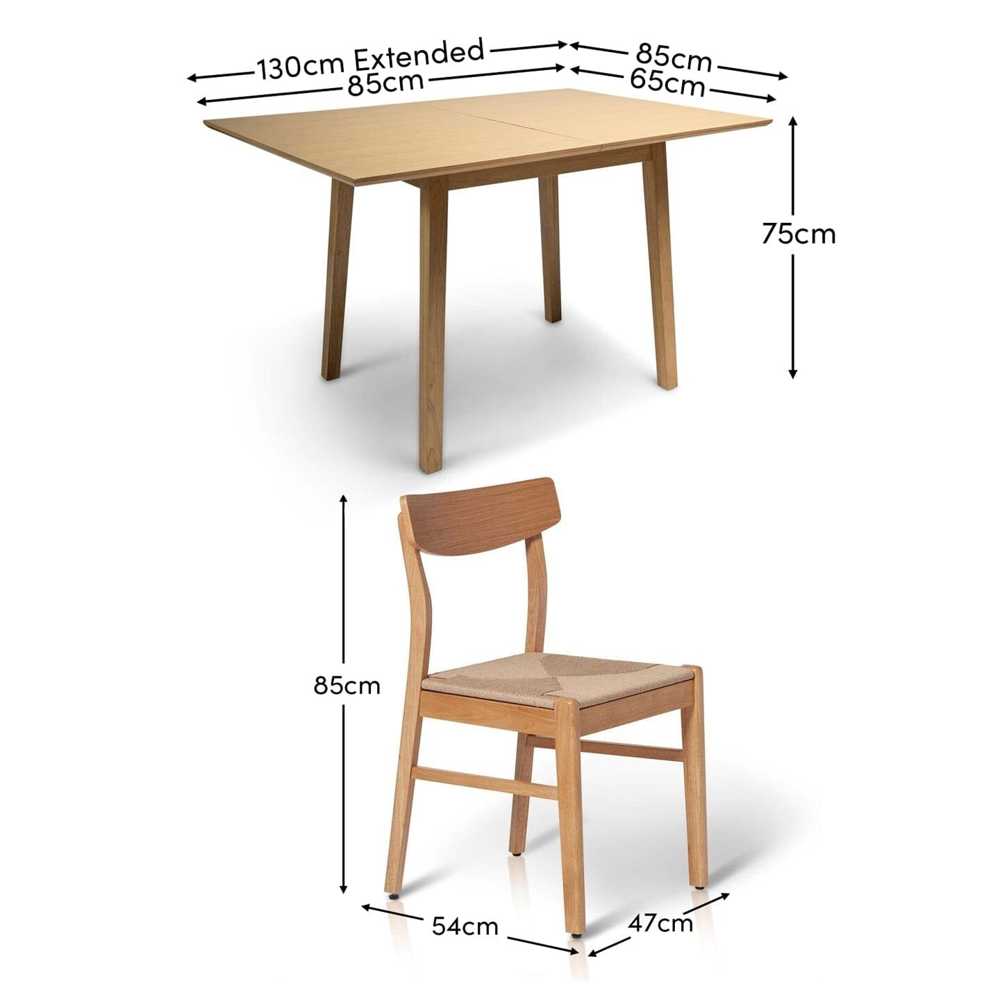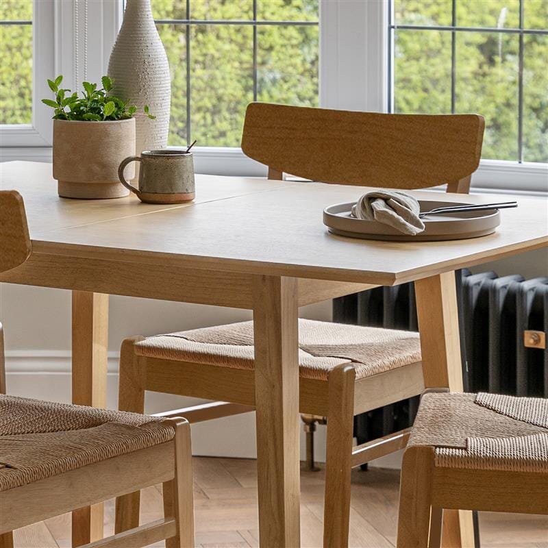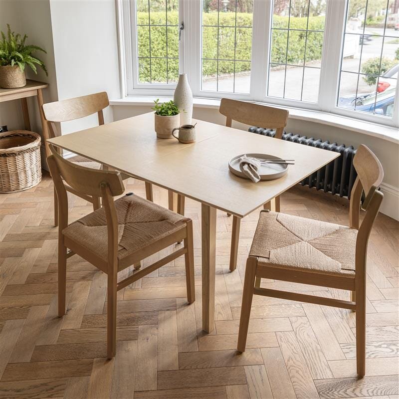 Charlie Pale Oak Extendable Dining Table Set – 4 Seater – Woven Pale Oak Dining Chairs