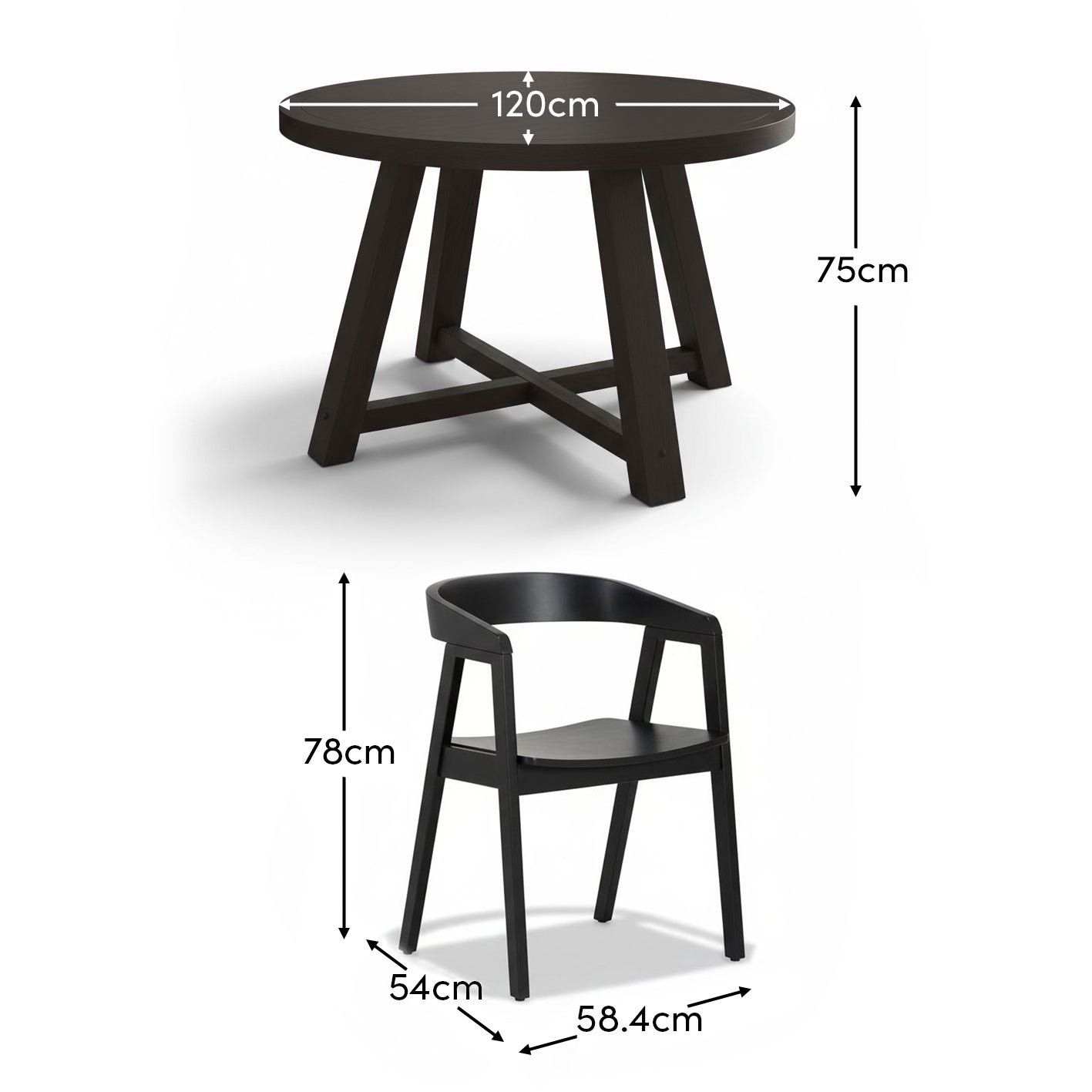 • Table design features – Round 120cm tabletop, chunky legs and crossover base design.