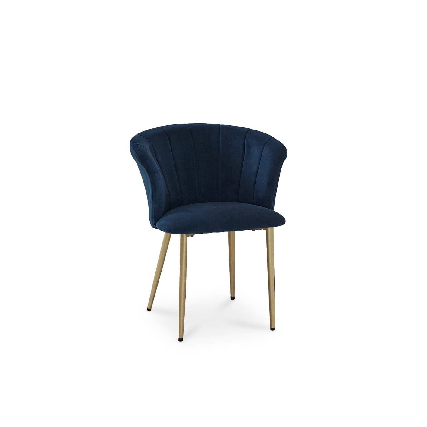 The unique shape and captivating blue velvet hue of this Cleo dining chair commands attention in any room, enhanced by its luxurious gold legs for an added touch of elegance. Cleo also promises unmatched comfort, with the elegant, curved backrest and padded seat, ensuring every mealtime is a delightful experience.
