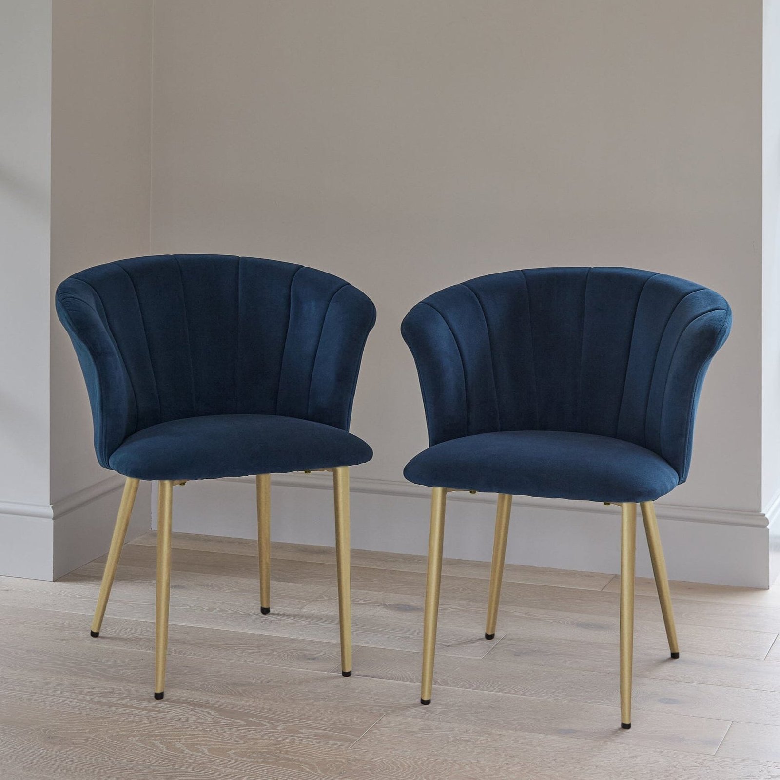 Cleo Ink Blue Dining Chairs – Set of 2 – Gold Legs