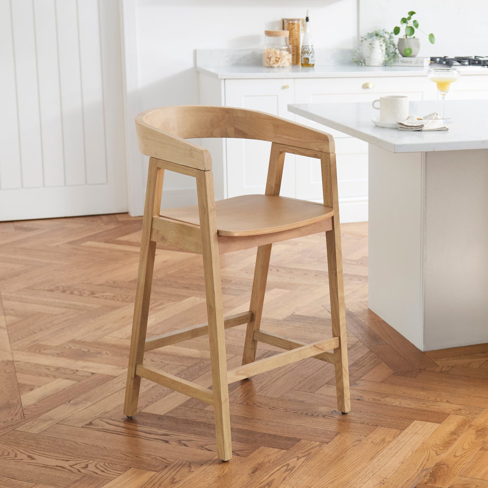 The Ella bar stool has been crafted from solid rubberwood, so it’s been made to be last. The curved back offers comfort as well as a contemporary look, that will complement any kitchen design.