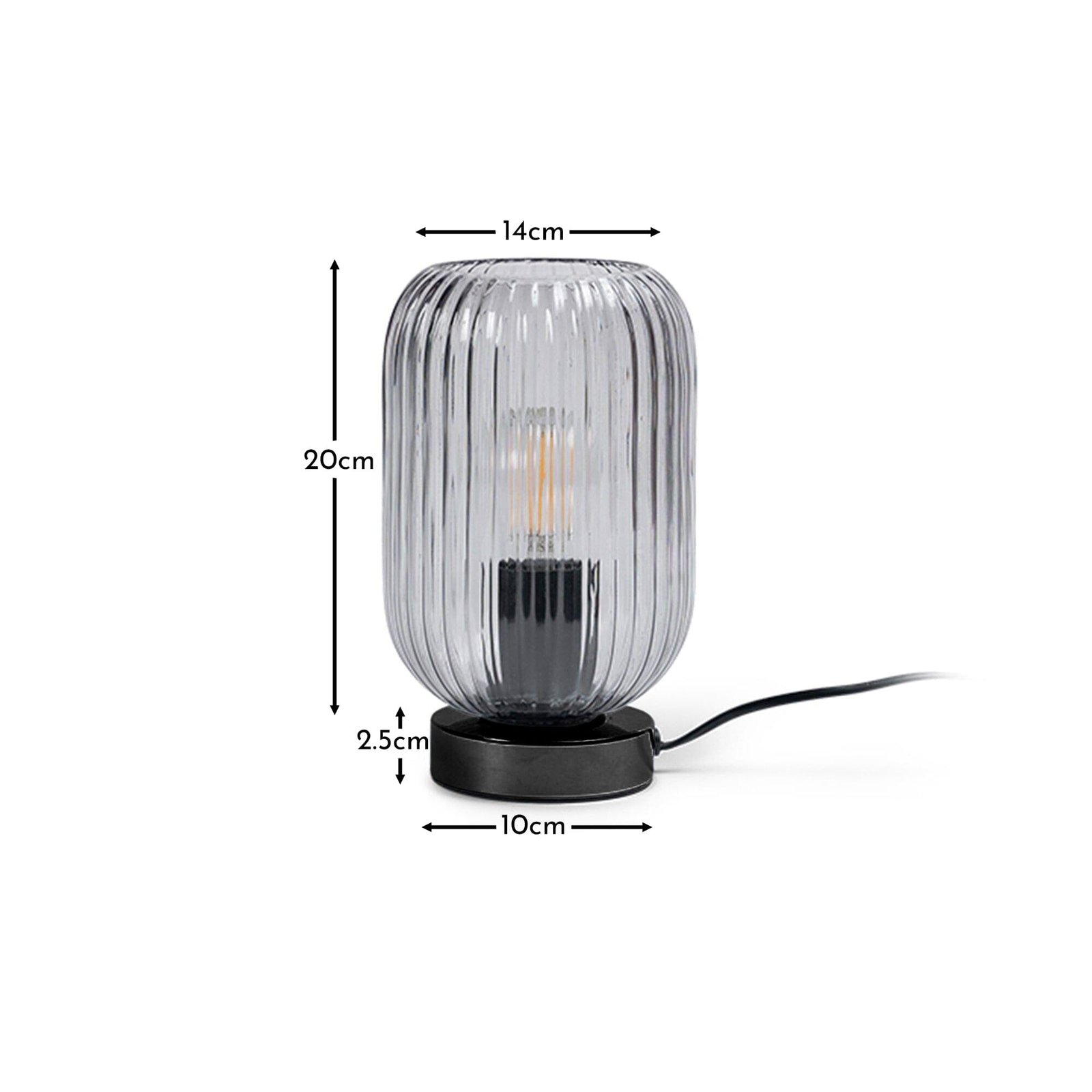 Elland 22.5cm Glass Table Lamp – Smoked & Black