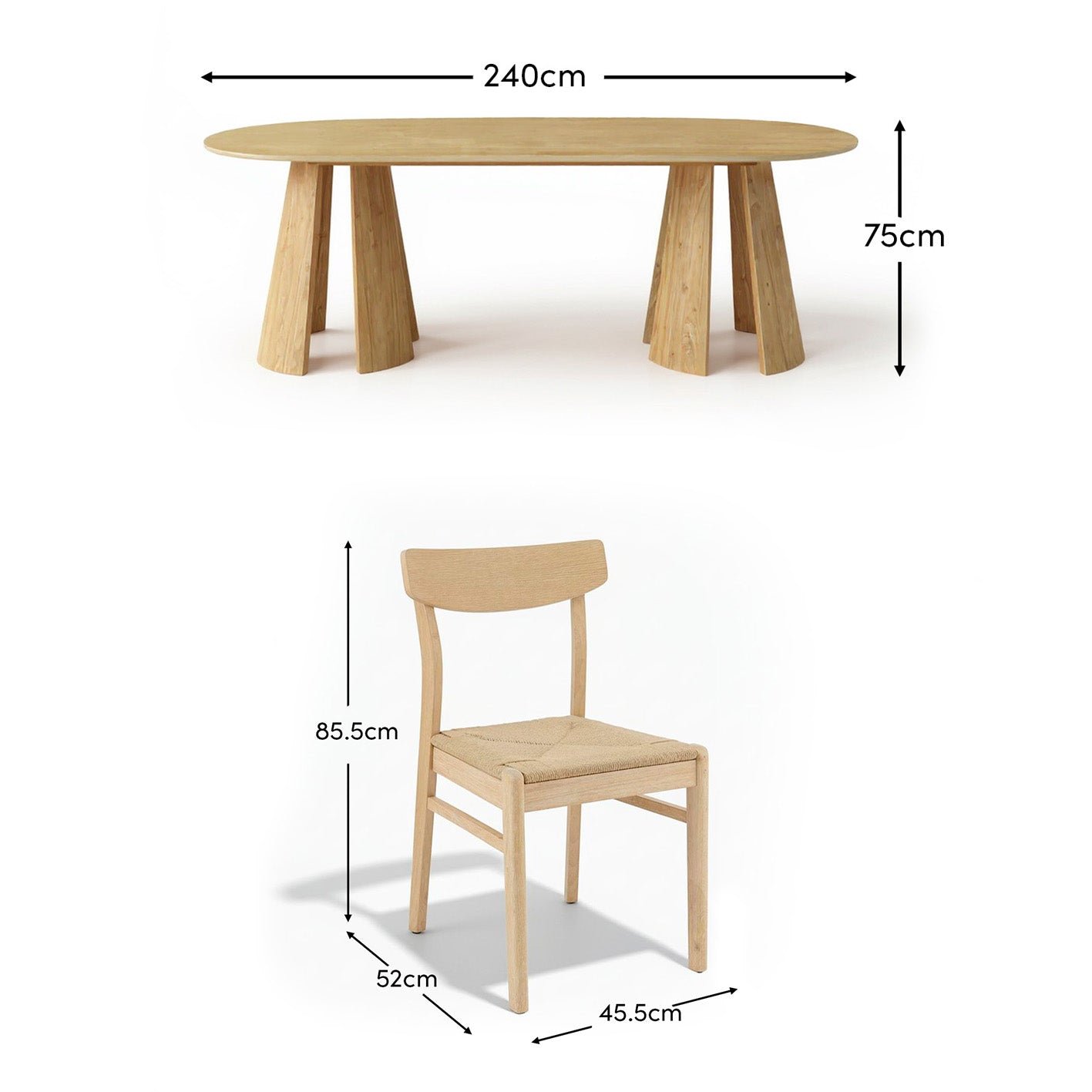 • Set includes -1 x Farren 240cm oval dining table and 6 Faye dining chairs.