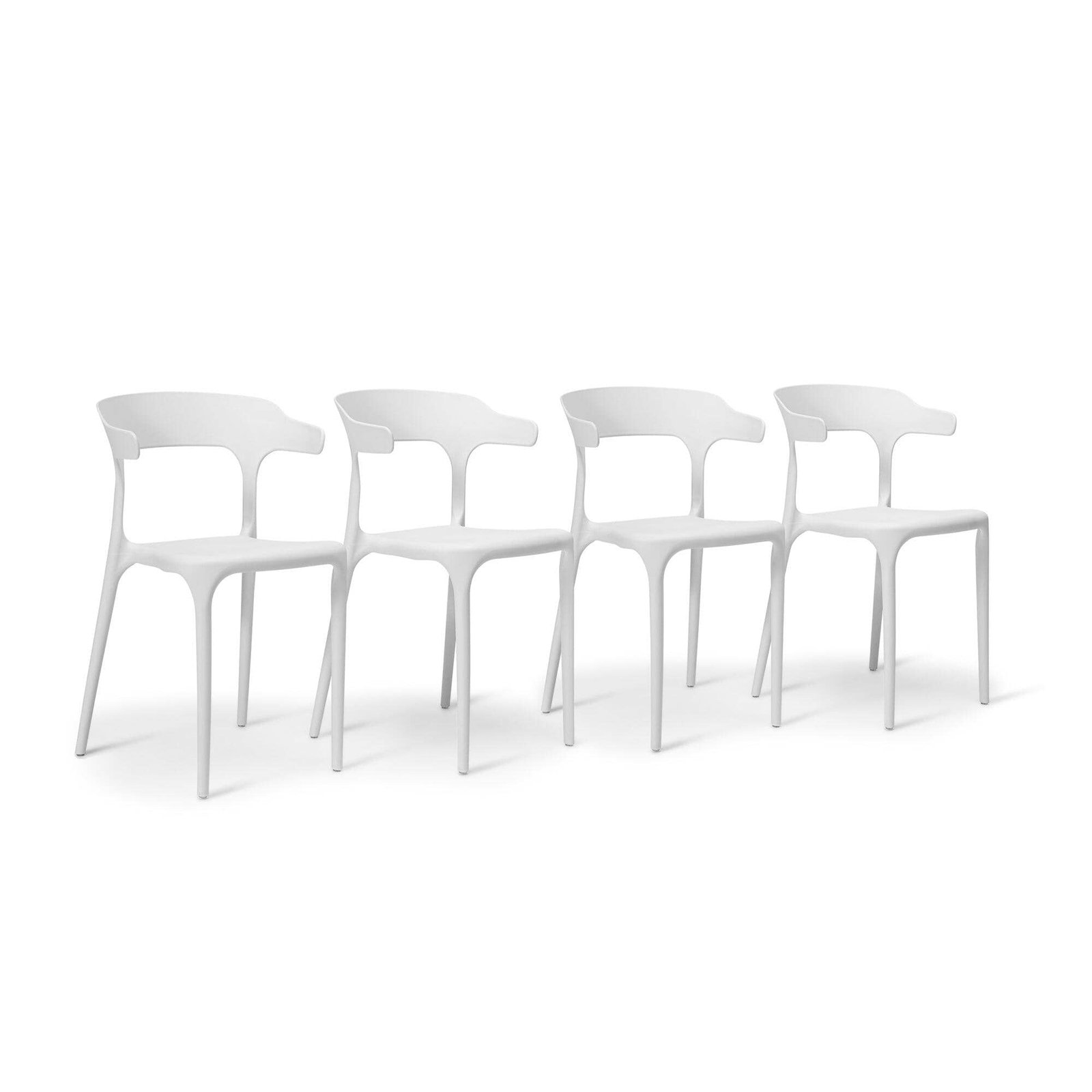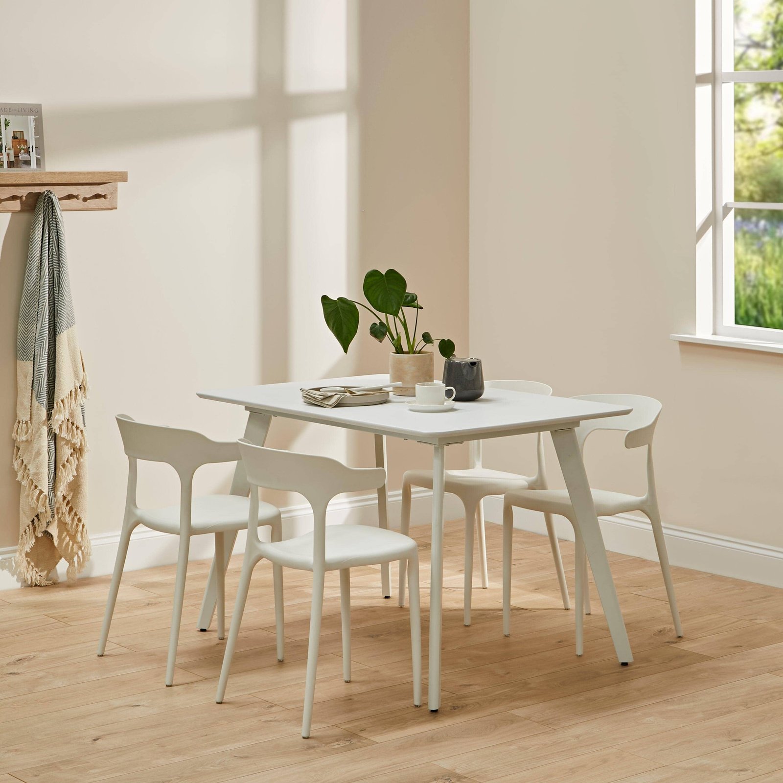 Introducing the stylish set of 4 Finn white dining chairs. The Finn white chairs add a modern look to you dining space, designed with low maintenance in mind, making them a great addition to family dining. Pair them with the Finn dining table to complete the contemporary dining set look.