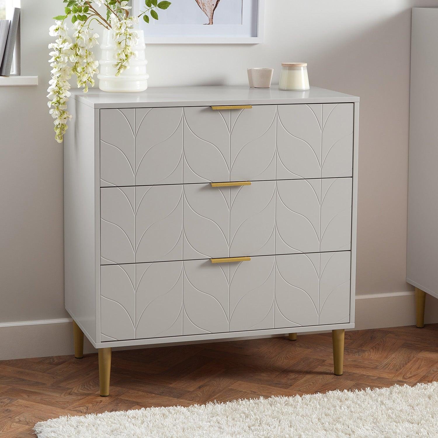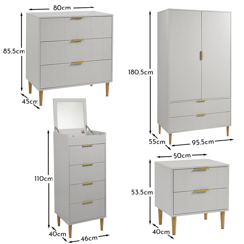 Gloria Wardrobe & Drawers Set – 3 Drawer Chest of Drawers – Grey