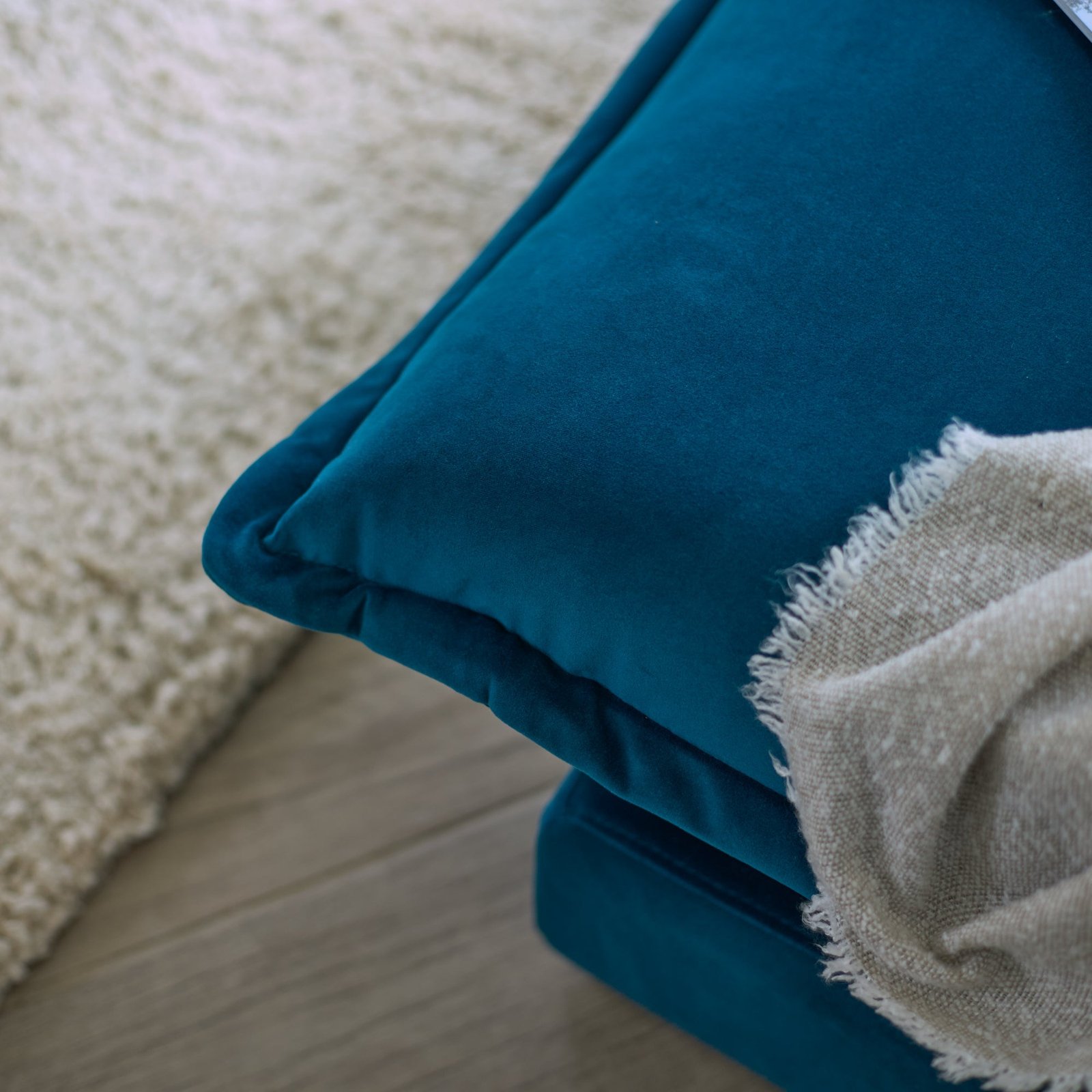 The Harlow 2 seater velvet sofa bed makes the perfect addition to any living space or guest room. Finished in a modern shade of teal, the Harlow features oxford edge piping and extra filled cushions for a comfy and contemporary feel. Transform from sofa to bed with an easy pull out function. The Harlow back can be adjusted depending on comfort level.