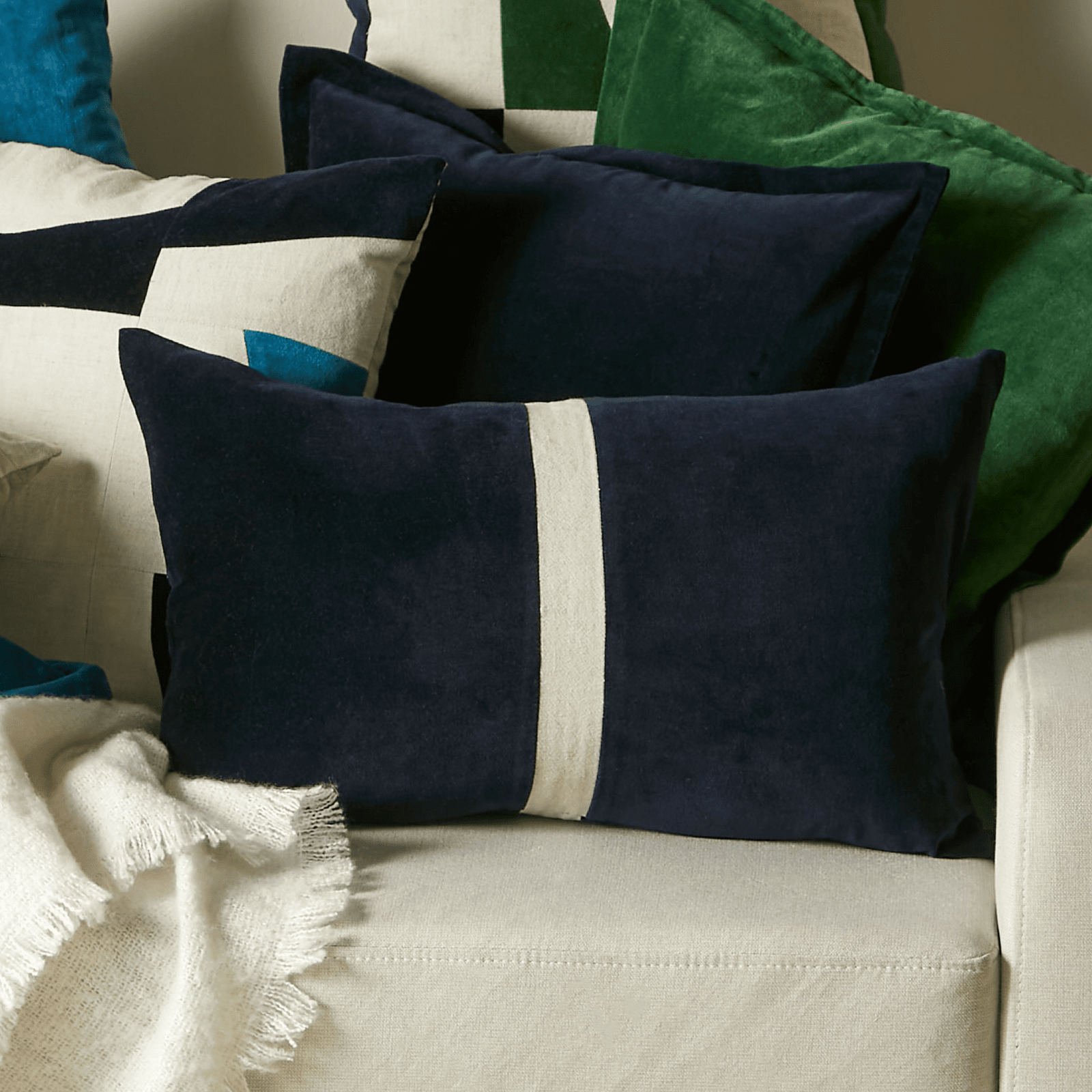 You can never have enough cushions! The Holbeck velvet and line stripe cushion will complete your collection.