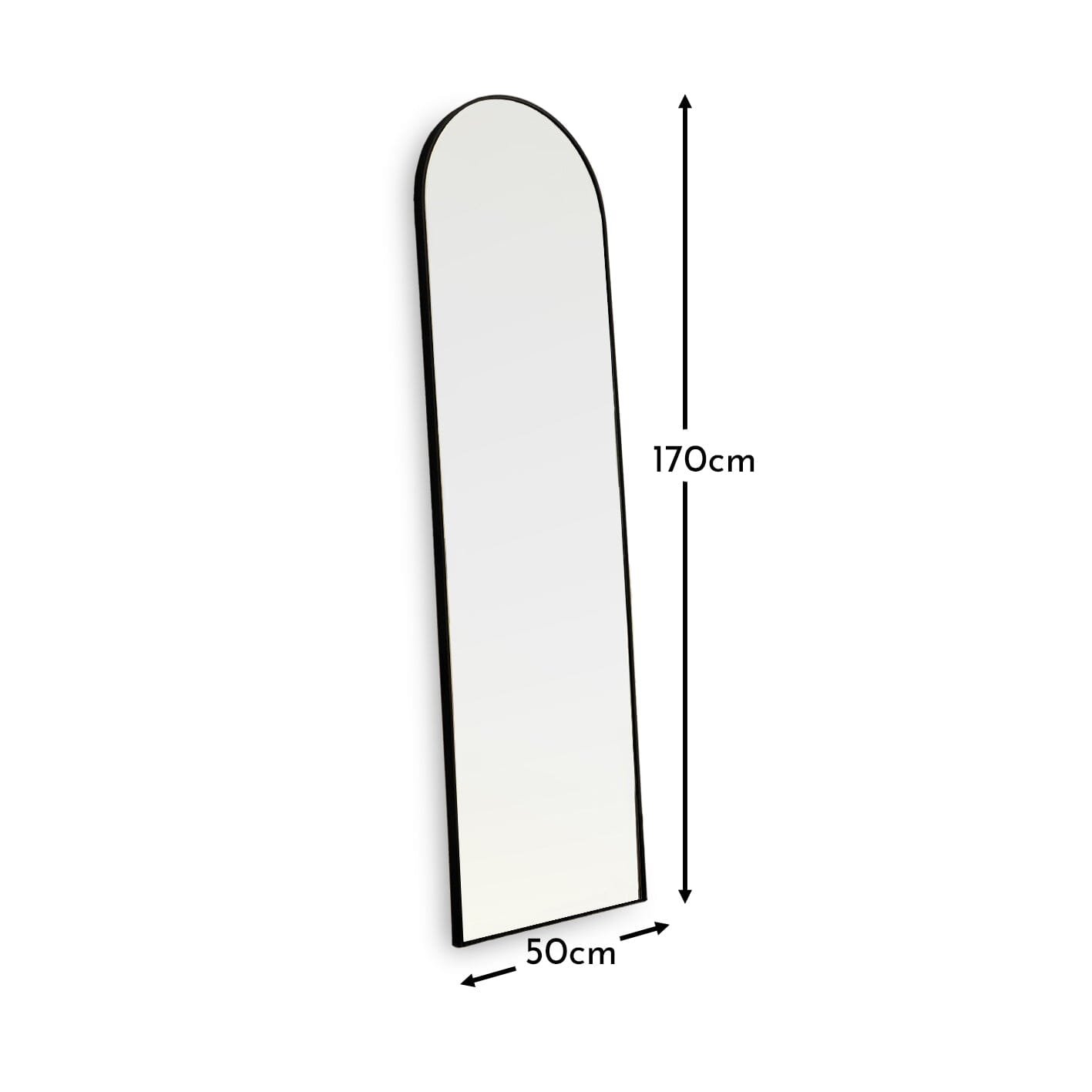 - Design features – Arch shaped 170x50cm full length mirror with black frame.