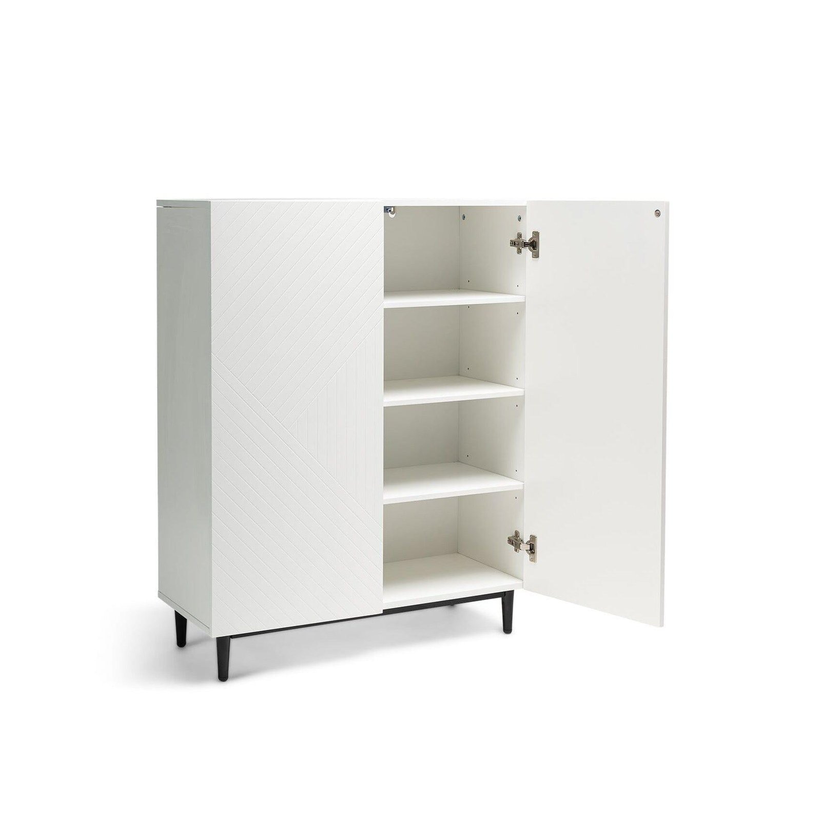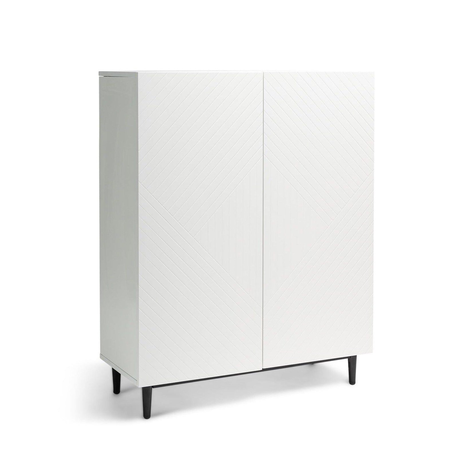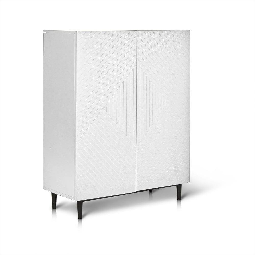 With a contemporary textured geometric design on the front of the doors this elegant white shoe cabinet will bring a crisp and modern look to any home, with the added practicality of providing ample storage space.