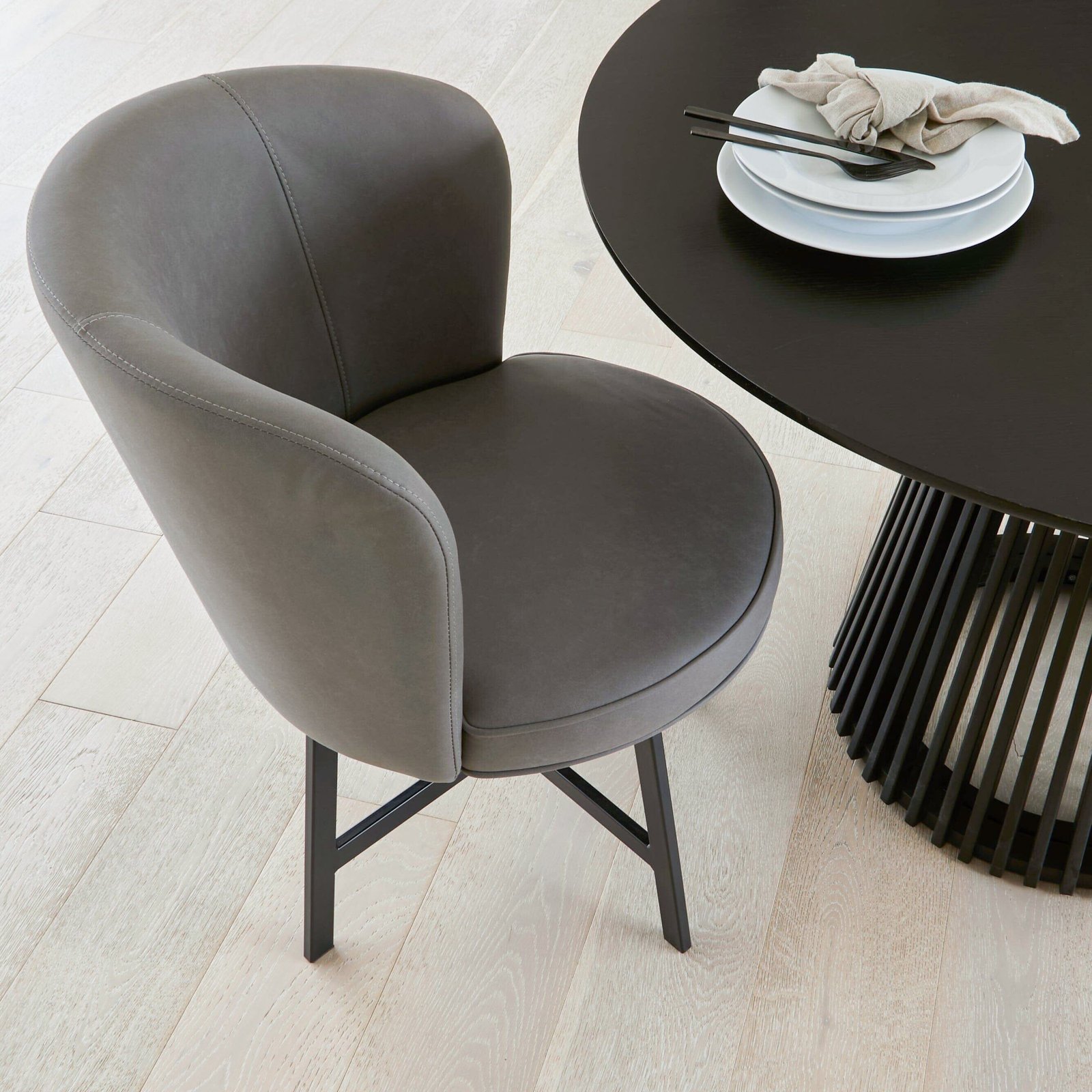 The Laura James Jacob Dining Chair in Steel Grey presents a contemporary seating solution for your dining space. Featuring an upholstered fabric round seat, with black metal legs, this Jacob dining chair creates a look of sophistication, attracting attention from your guests. Available in a 2 pack, this grey dining chair set is an ideal choice for pairing with the Laura James Willow Dining Table, helping to form an all-round contemporary and stylish dining room.