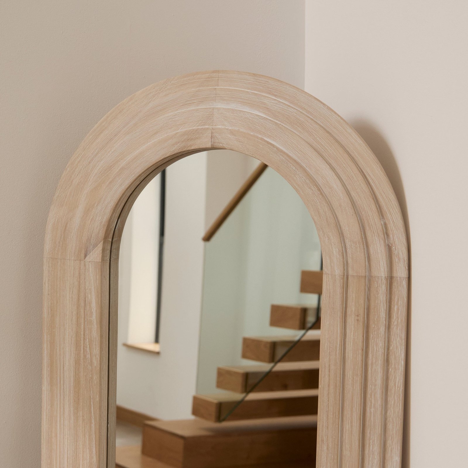 Elevate your home with the Kubu wooden arch mirror, ideal for spacious wall or corner to create a focal point. The Kubu features a modern arch shape with layered effect detail in a whitewash finish. The Kubu mirror has been crafted with paulownia wood which is lightweight yet still robust.