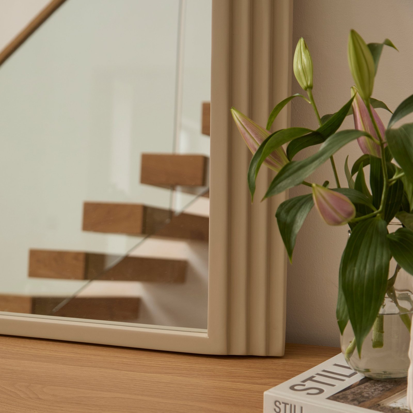 Elevate your home with the Kubu wooden arch mirror featuring a stylish layered effect frame and finished in taupe. The Kubu mirror has been crafted with paulownia wood which is lightweight yet still robust. Ideal for creating a focal point, hang the Kubu arch mirror over a console or mantlepiece for a stylish and practical touch to your home.