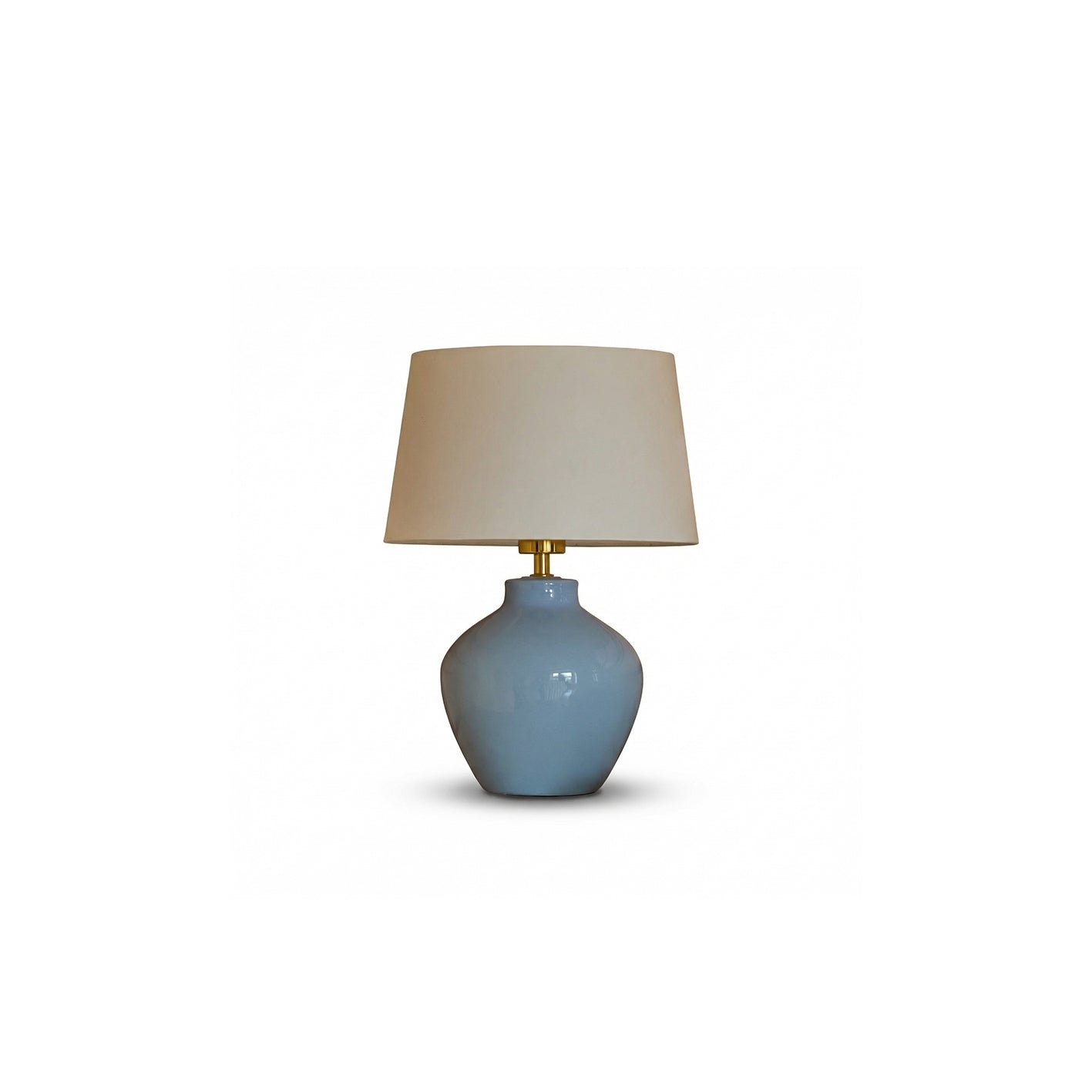 The Launton ceramic table lamp comes in a beautiful shade of cornflower blue and features a classic rounded base with a gold metal bulb holder. The Launton blue lamp comes with the Coningsby snow white cotton lampshade for a classic look. A colourful table lamp is a stylish way to elevate your sideboard or console for a stylish look.