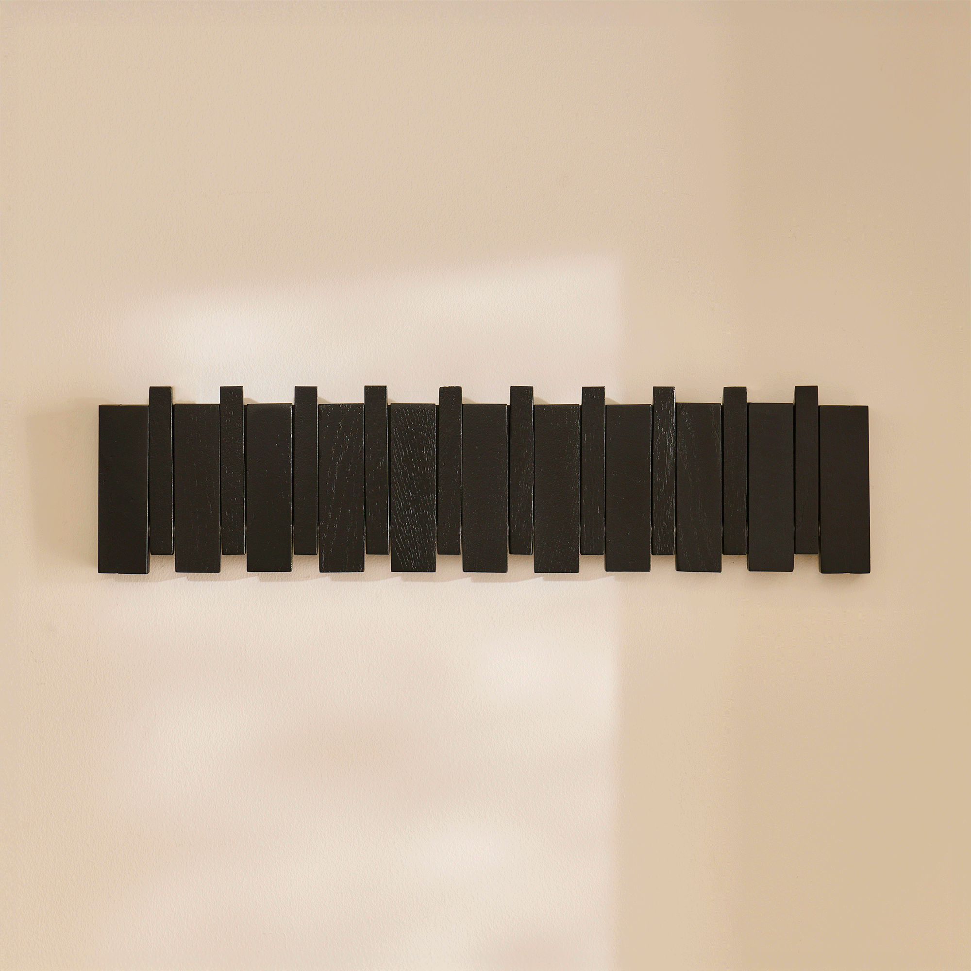 Elevate your hallway or boot room interior with the chic and contemporary Lowell folding coat rack. Lowell comes in black and features coat pegs that fold down when required for hanging up coats or accessories. This compact design features ten practical fold down hooks, blending style with functionality beautifully.