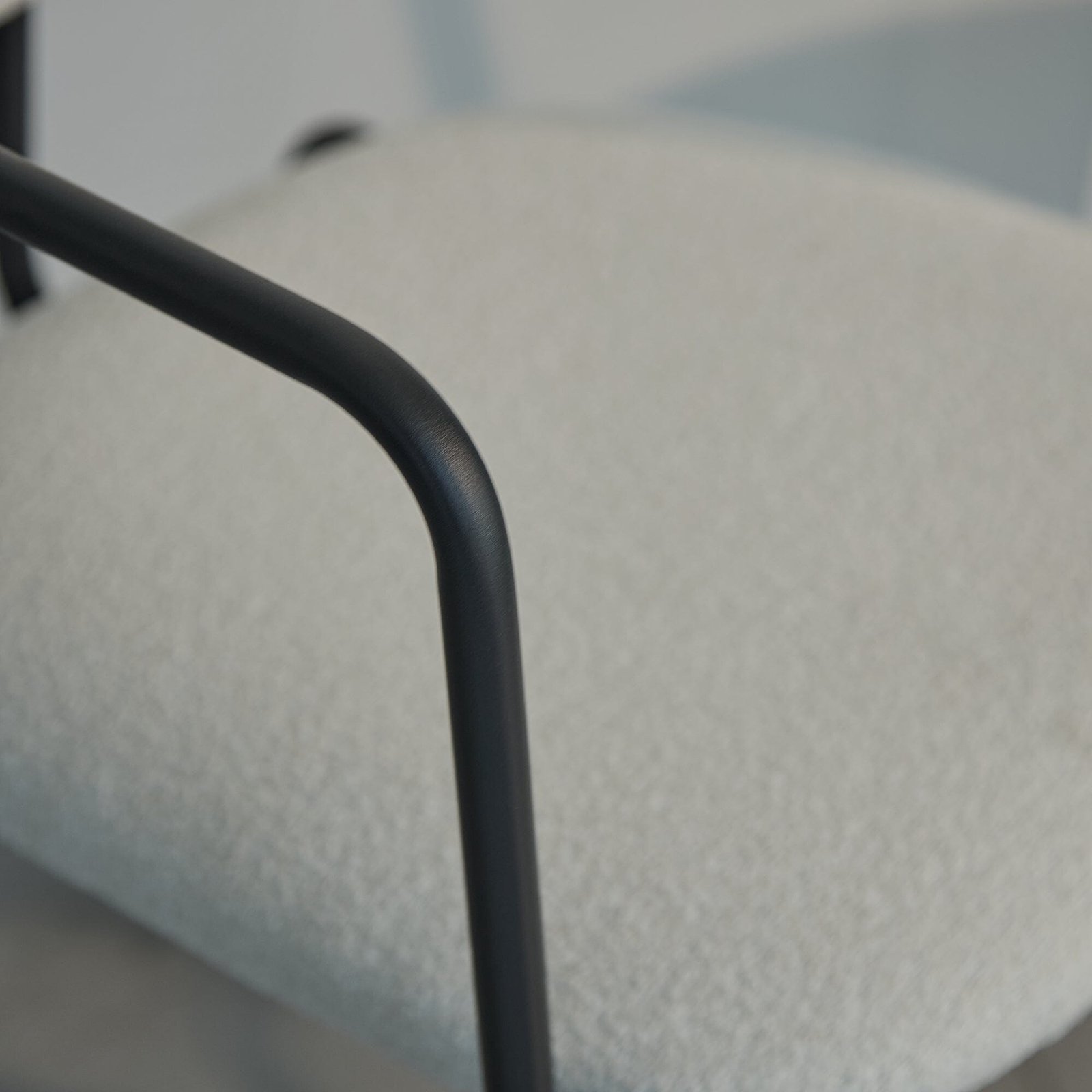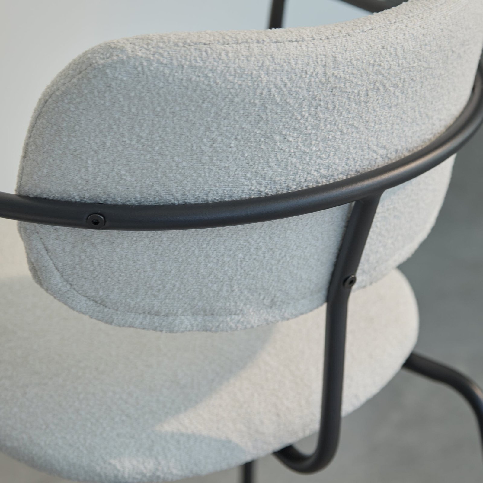 The Luca dining chair is the ultimate contemporary piece, exuding industrial and modern style to create a comfortable and functional seating solution. Featuring a light beige boucle seat, accented by a sleek black metal frame that wraps around the backrest for support, this dining chair perfectly complements the Jade table.