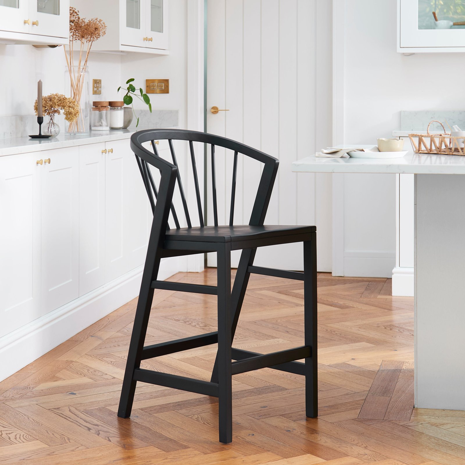 This set of 2 black wooden bar stools are made with solid rubberwood, with a sturdy and robust construction, forming a durable and high-quality seating solution designed for long lasting enjoyment. Mable’s contemporary spindle design makes this stool a stand-out piece, complementing your breakfast bar or dining area.