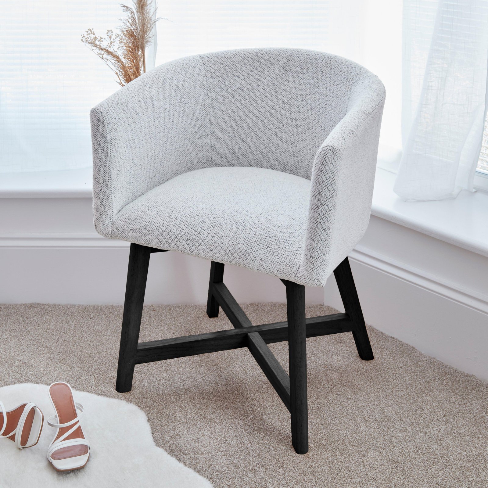 Please note this chair is not intended to sit tucked underneath conventional dining tables; its design requires it to be placed on the outside of the table, given the height of its arms.