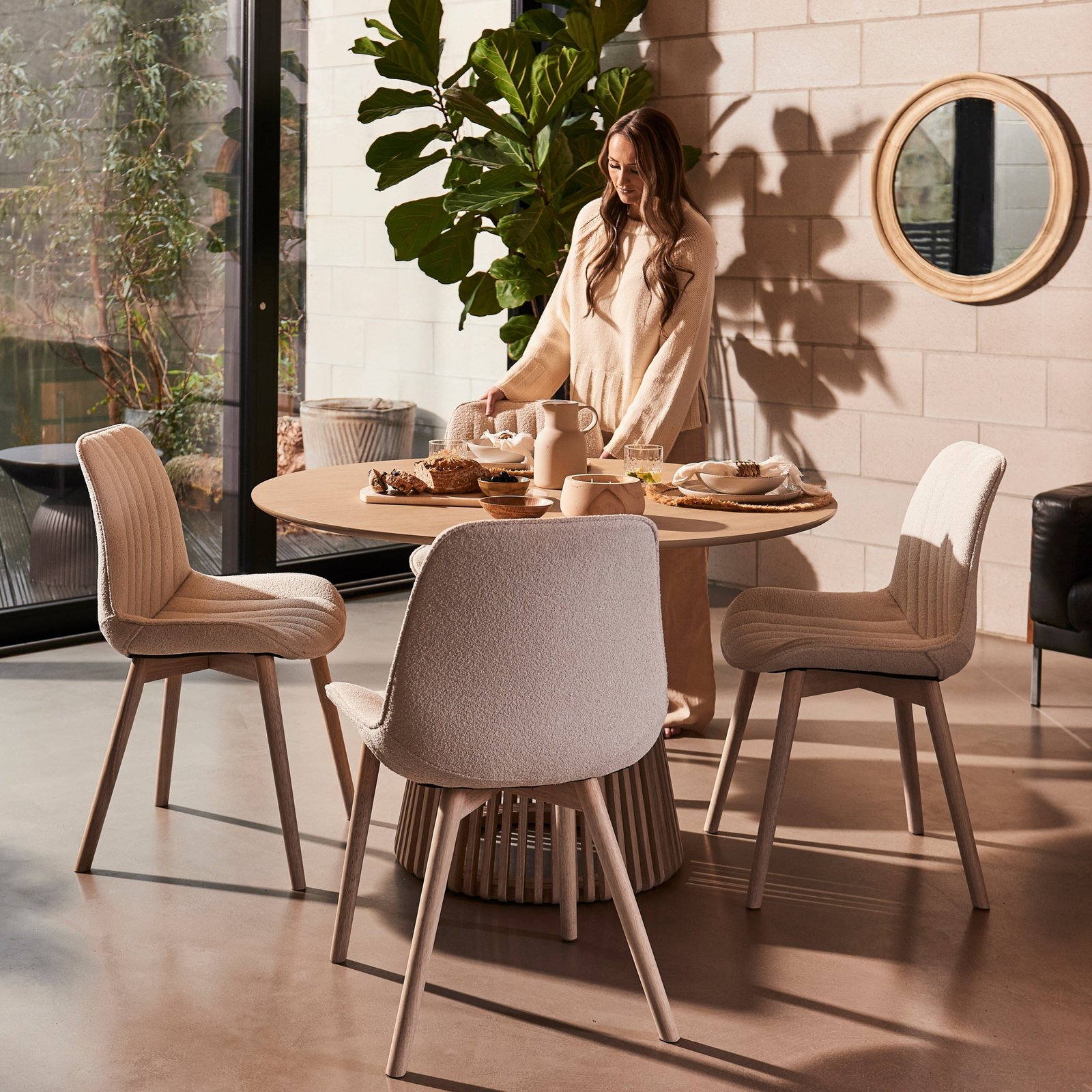 Styling your home with a round mirror will instantly elevate the space. Mirrors not only add interest to walls, but they reflect light creating the illusion of more space.
