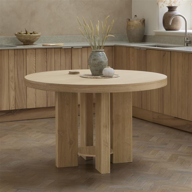 Marlon Whitewash Oak Round Dining Table Set – 4 Seater – Tilly Dining Chairs – Whitewash Oak