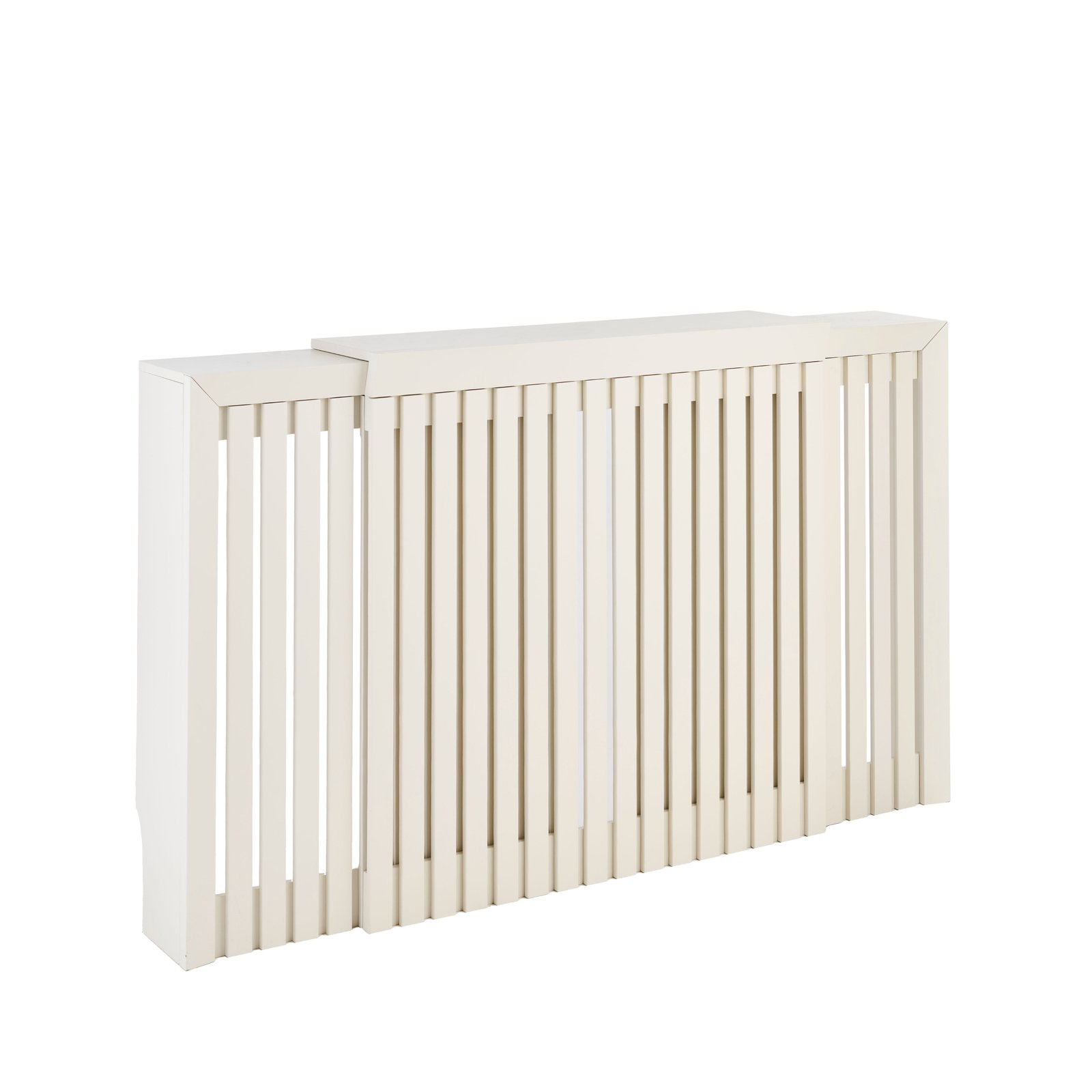 The Merida extending radiator cover from Laura James is finished in a warm oatmeal hue and features thin vertical slats to help protect little hands from radiators. This adjustable radiator cover has three panels that can extend to several different lengths and can be adjusted by simply sliding the panels to the size required.