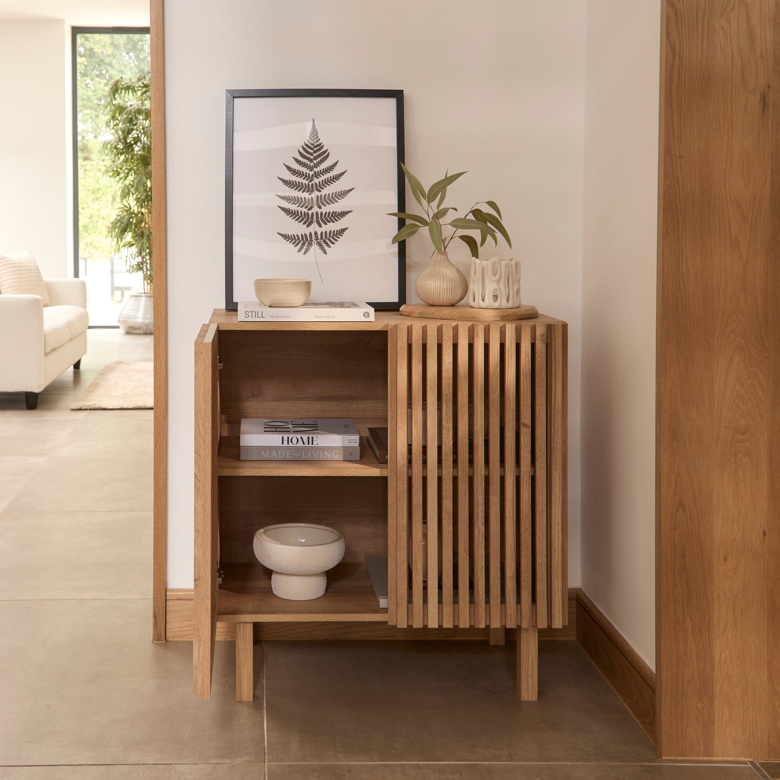 Elevate your home with stylish storage and style the slatted front sideboard with artwork, a candle or a plant for a personal touch.