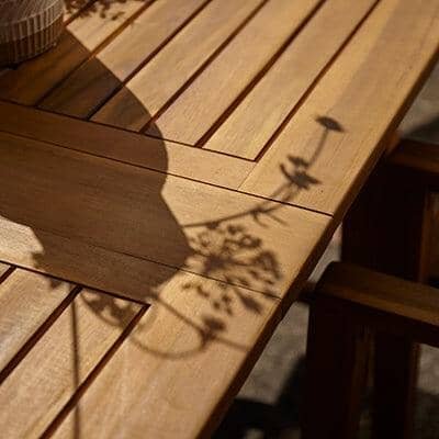 - What’s included – Oakley 4 seater wooden extendable dining table with 4 Oakley dining chairs & parasol in cream.
