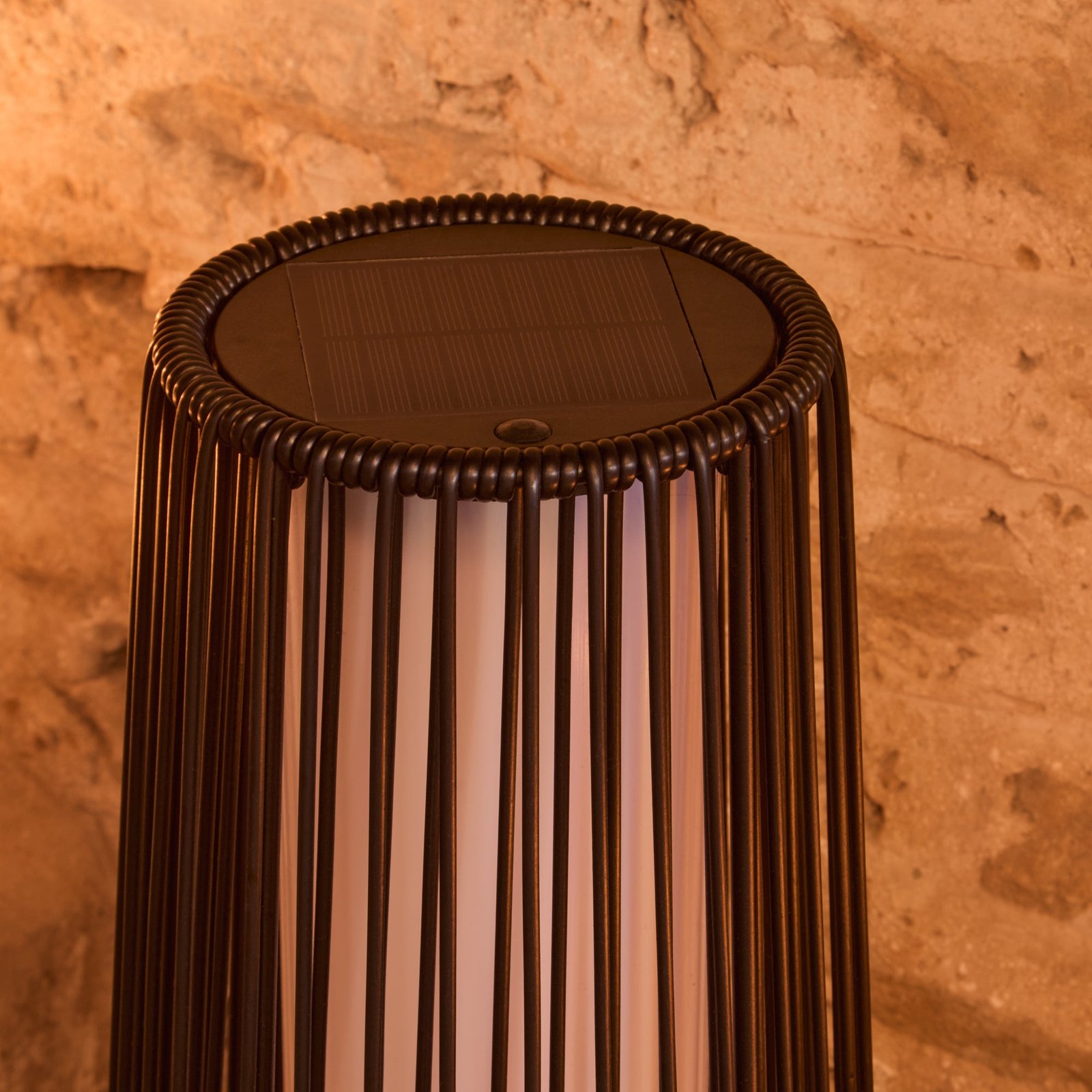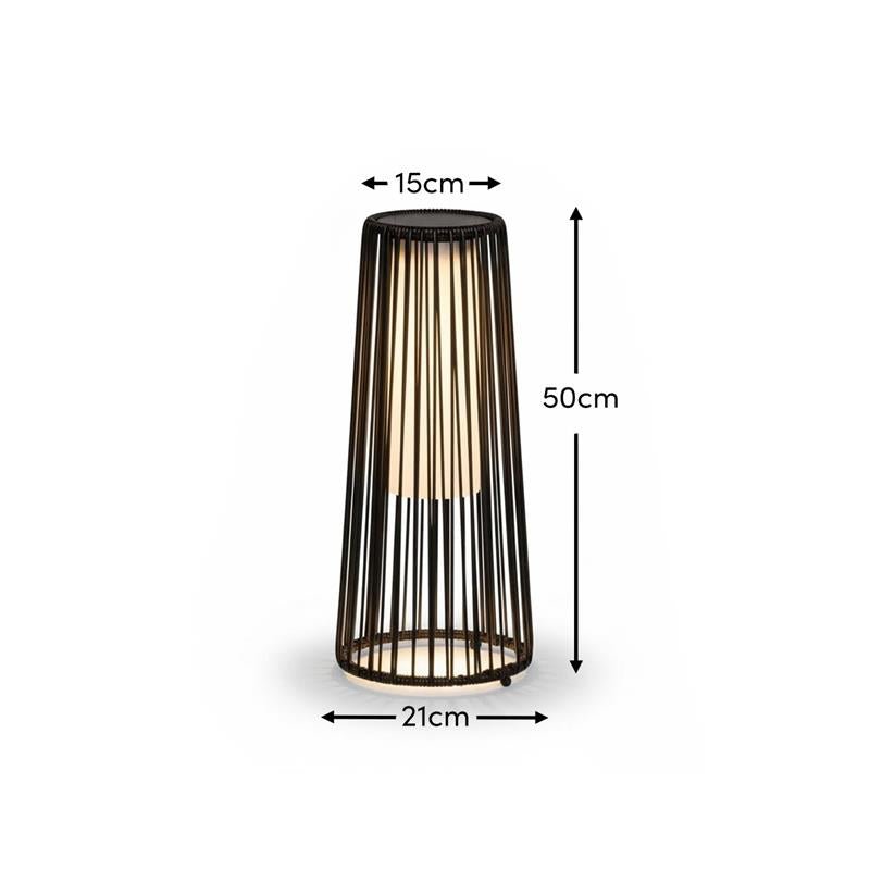 - Design features – 50cm Cylindrical black slatted solar lantern.