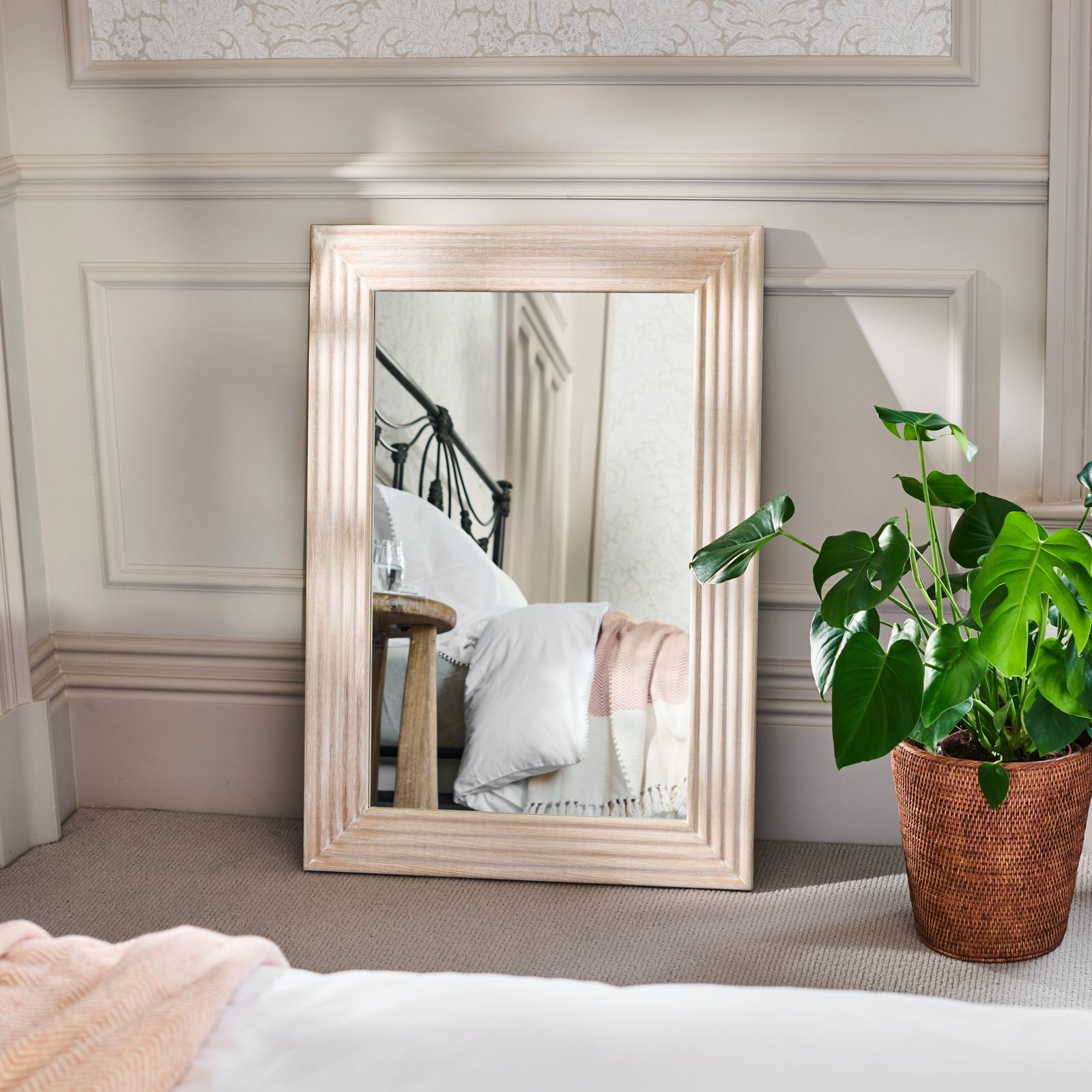 - Design features – 100x70cm mirror with fluted wooden frame.