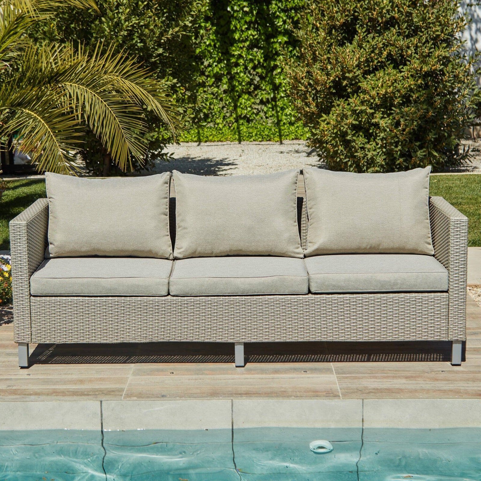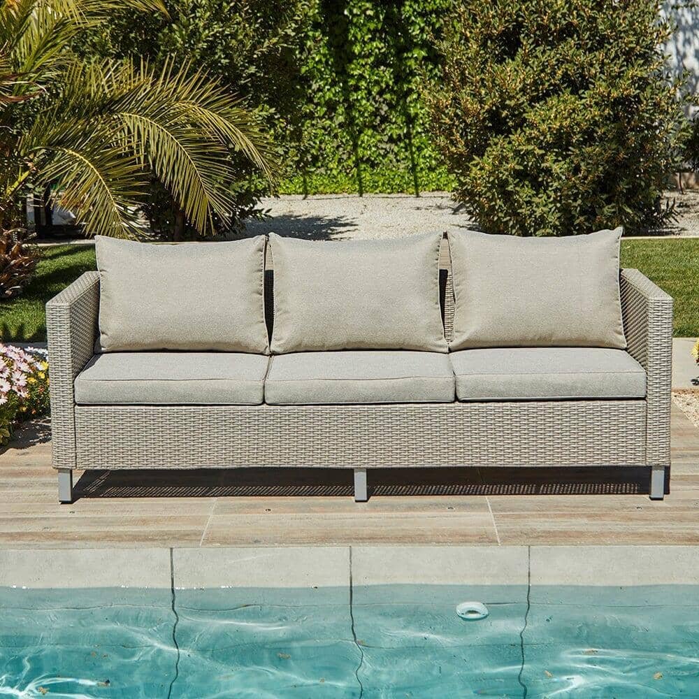 Outlet – Aria 3 Seater Rattan Garden Sofa – Light Grey