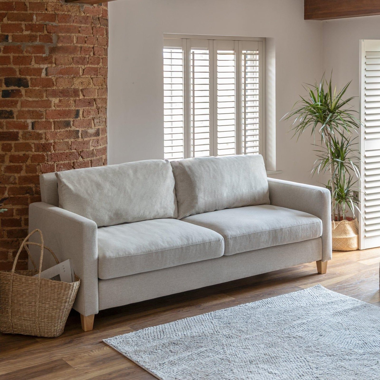 This Ava 3-seater beige sofa with its streamlined proportions and cushions you can sink into, ensuring an comfortable and cosy lounging experience every time. Enjoy endless relaxing nights in front of the tv with family on the Ava beige sofa.