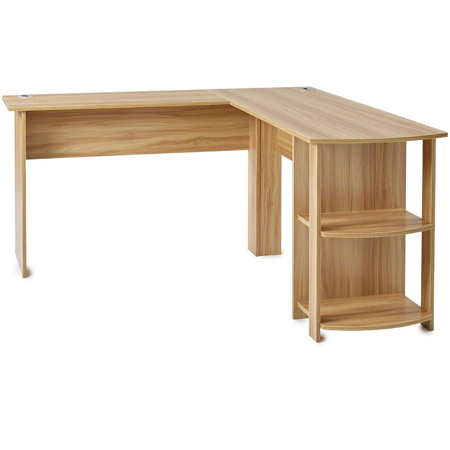 Outlet – Beech L-Shaped Computer Desk With Shelves