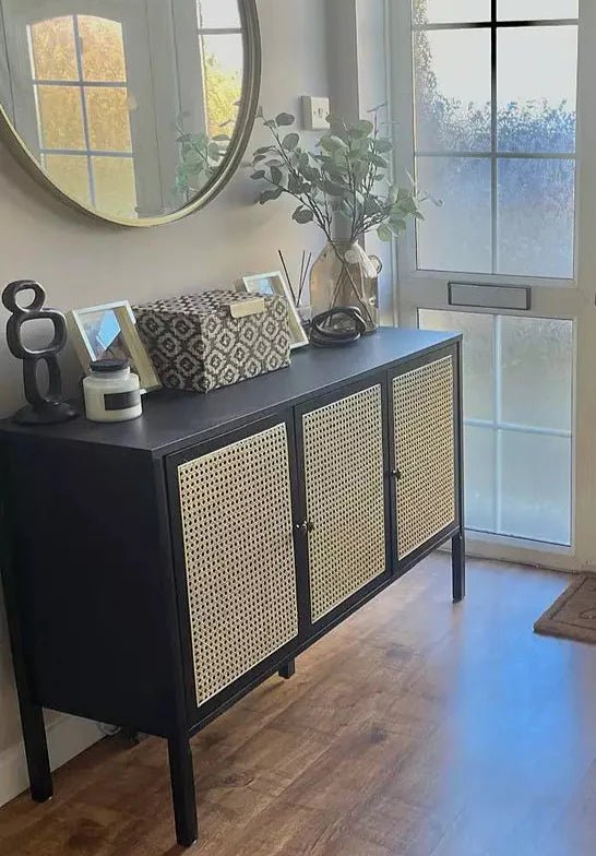 This 3-door sideboard offers you plenty of storage without compromising on style. With natural cane doors and a contrasting black painted finish, this sideboard will look great in any living space.