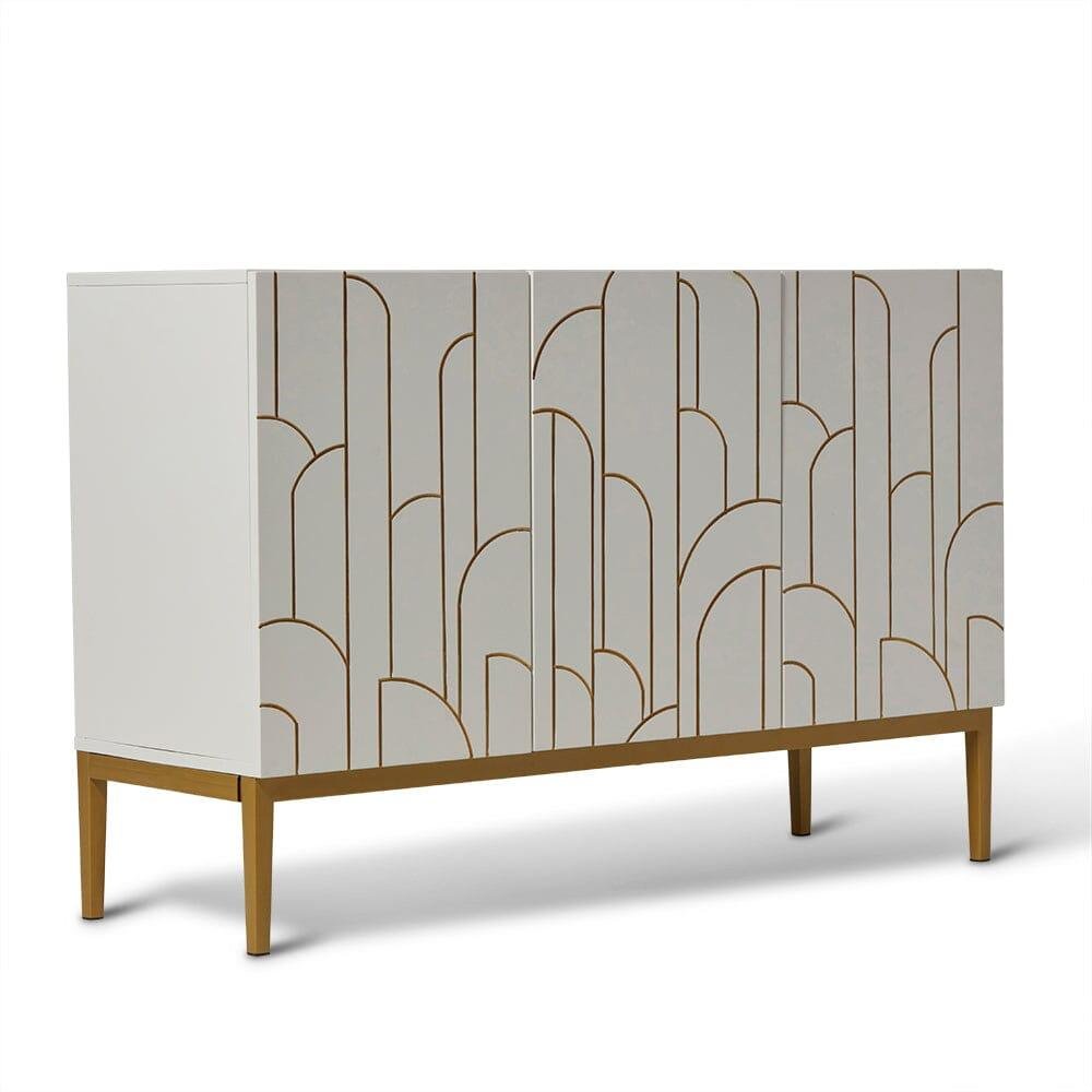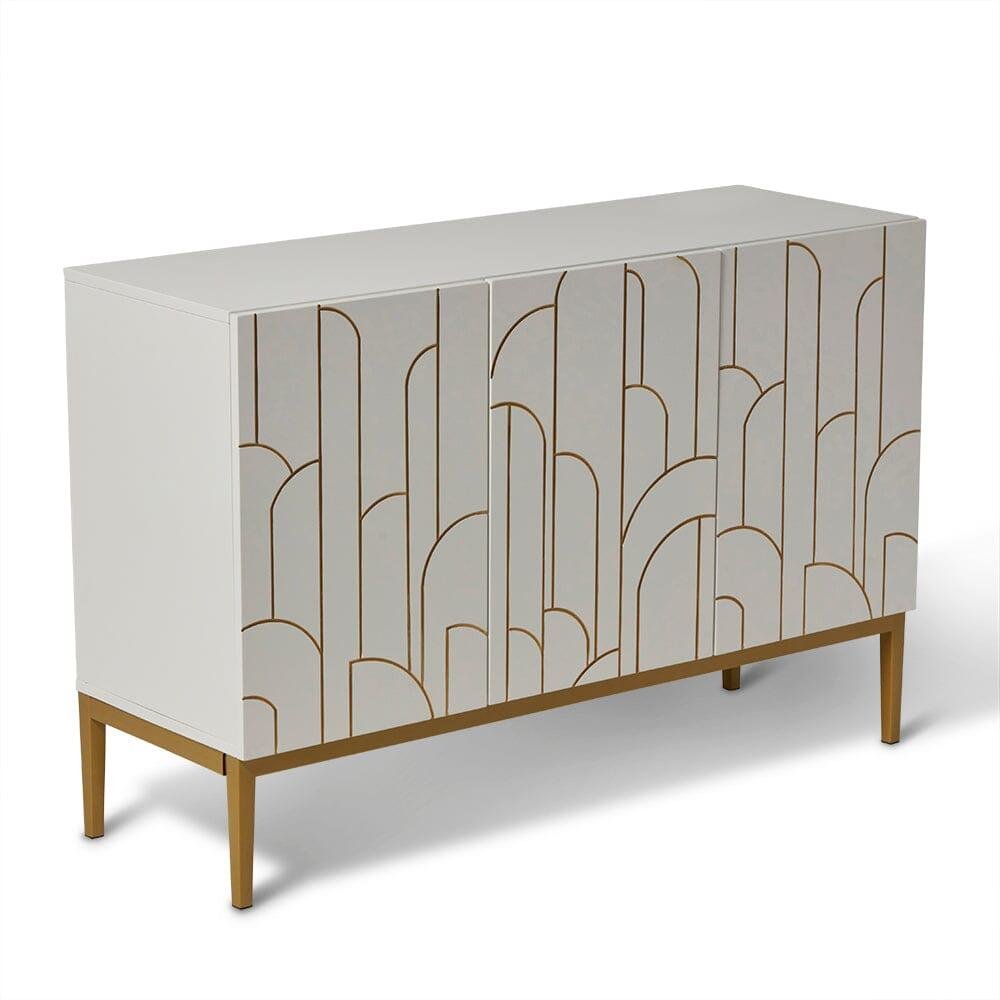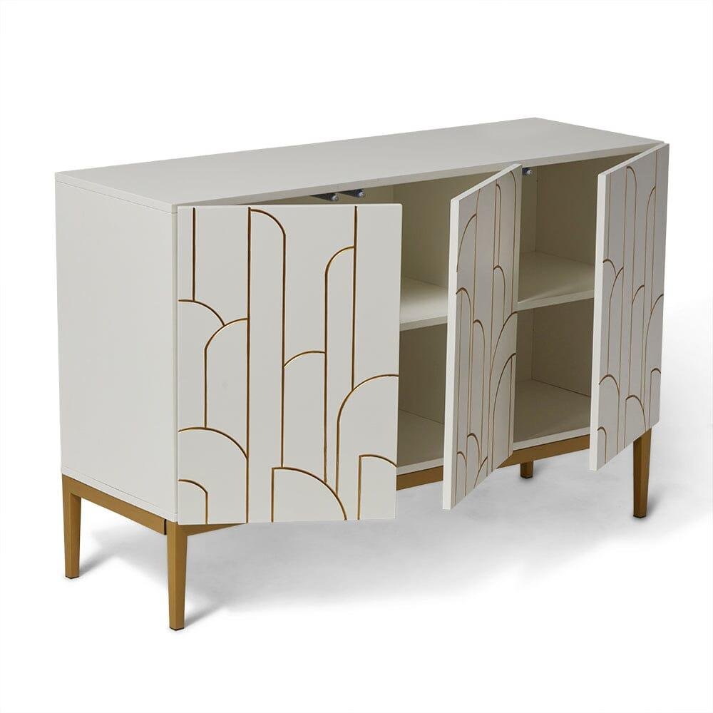 This eye-catching white 3-door sideboard adds a new lease of life to any room in your home. Its Art Deco inspired gold design creates interest and appeal, becoming the ultimate furniture piece for both storage and decoration.