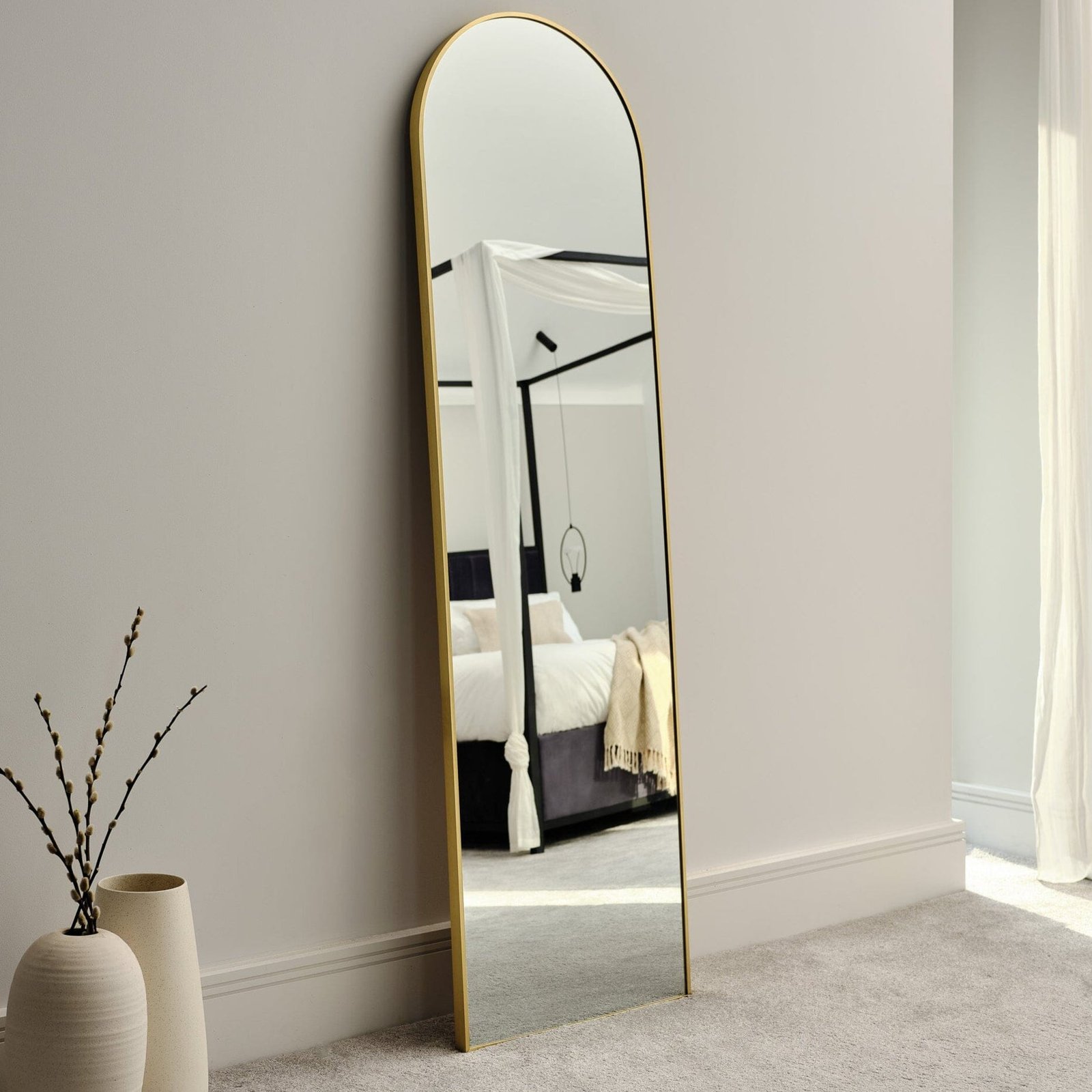 - Design features – Arch shaped 170x50cm full length mirror with gold frame.