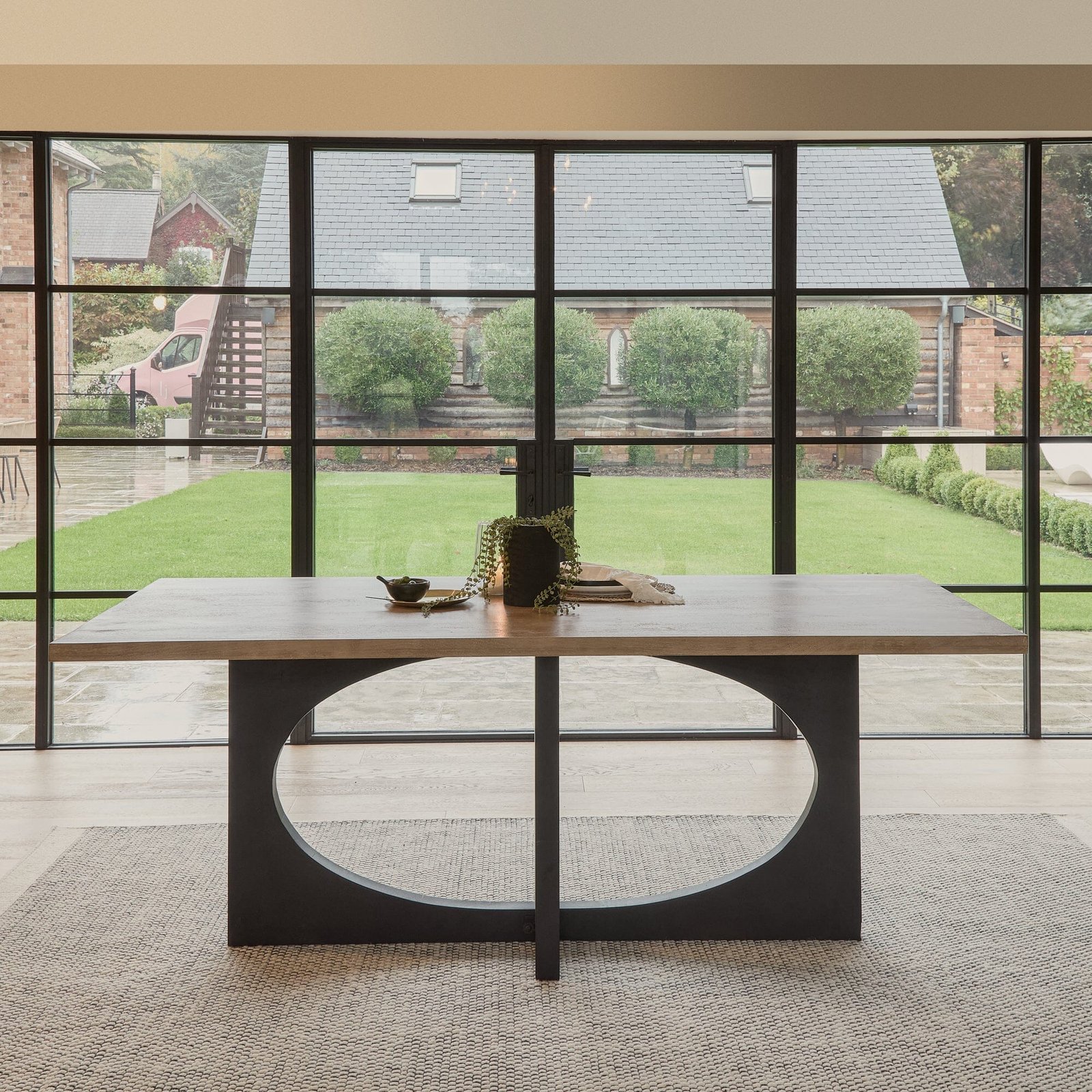Creating a focal point with a beautiful dining table is a great way to elevate an open plan kitchen diner space. The Jade rectangular dining table seats up to 8 people and is designed in solid mango wood, with a chalked mango wood tabletop and black table legs. The table base features a large curved cut out design for a chic and contemporary look.
