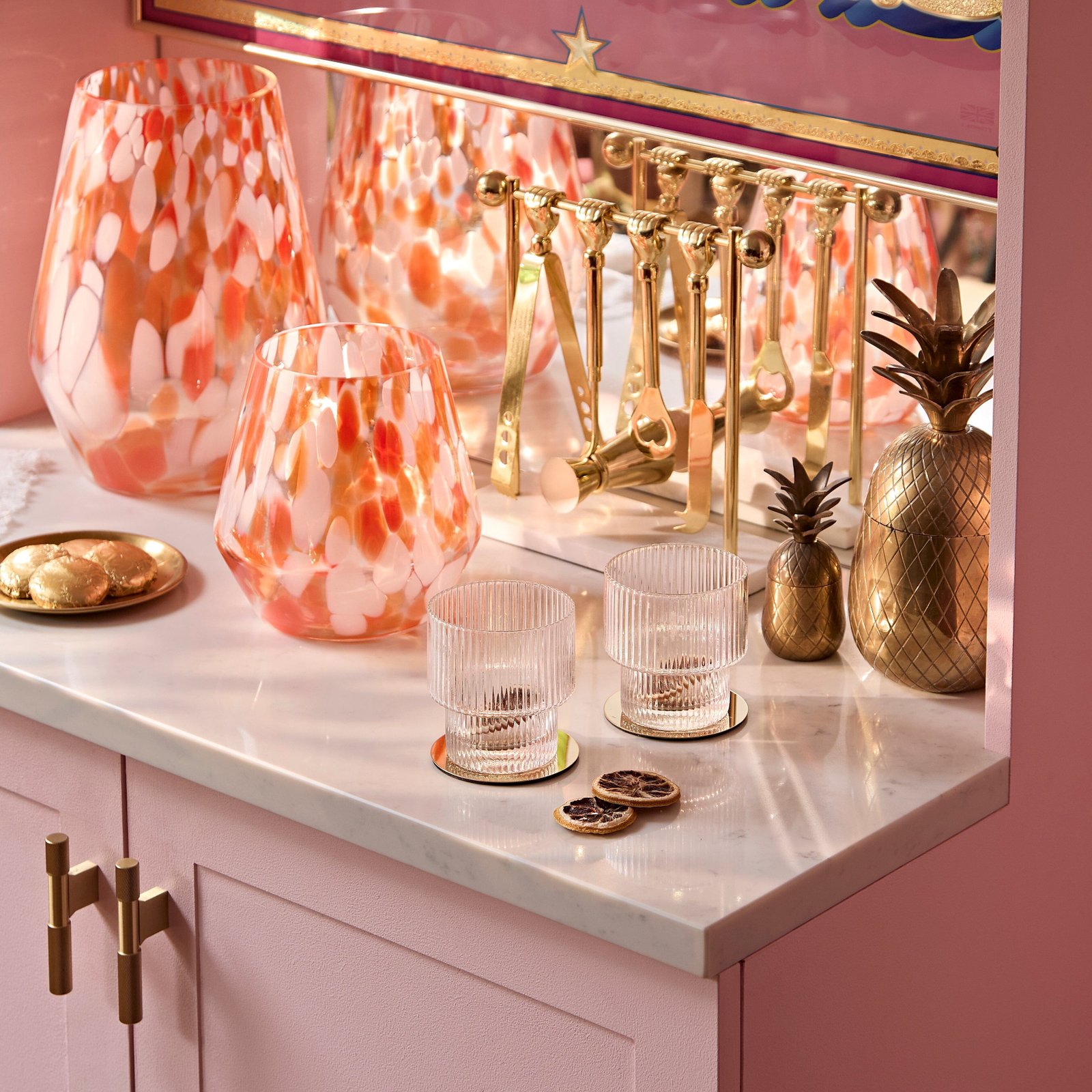 Revamp a console table or mantlepiece with the striking Lazio glass vase, or style with the small Lazio confetti glass to create a vibrant and bold look.