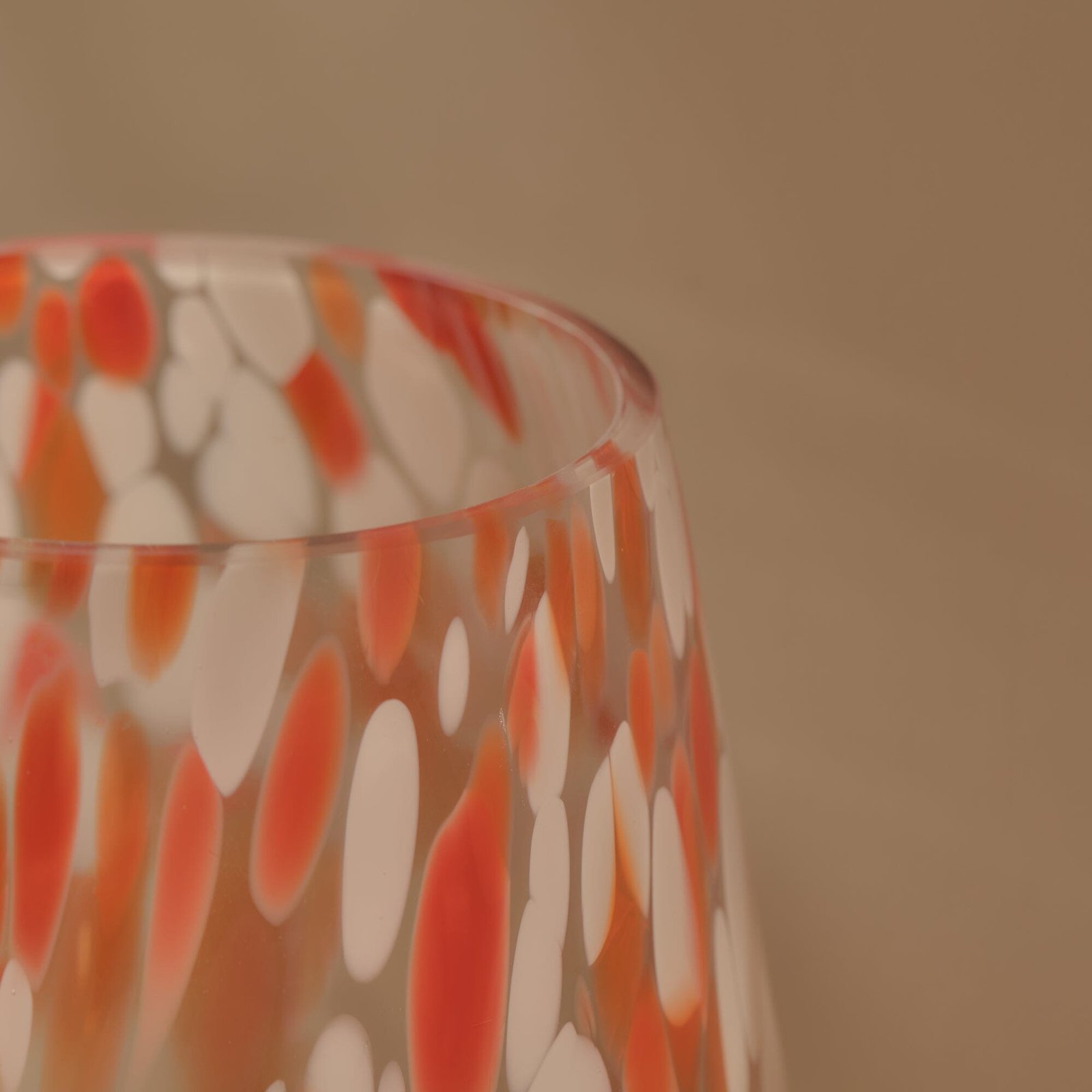 The elegant and vibrant large Lazio glass confetti vase features a sculptural design with flecks of bright paprika orange blended with white for an eye-catching look. Lazio catches the light beautifully and it’s colourful confetti pattern makes this a versatile accessory for anywhere in the home.