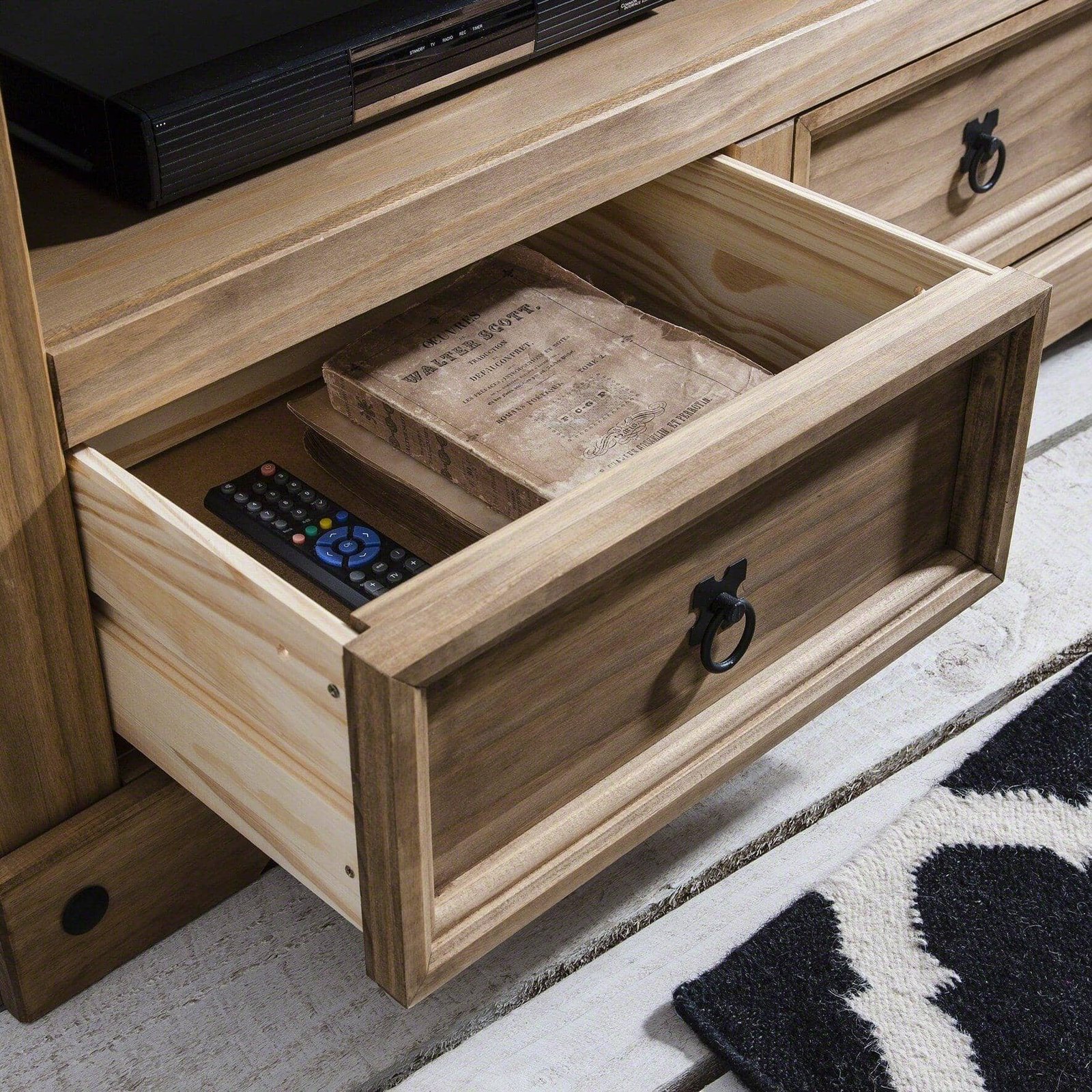 This stunning TV unit, crafted from solid pine is a must-have addition to your living room. With plenty of space to keep electronics housed safely, this piece will look great in your living room. Featuring traditional black hardware, this classic tv unit will easily become a cherished piece in your home.