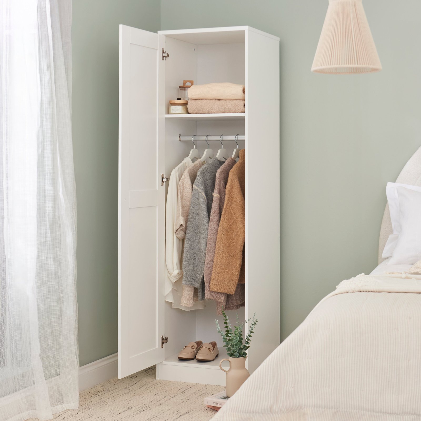 - What’s included – Stevie 1 door wardrobe in ivory white.
