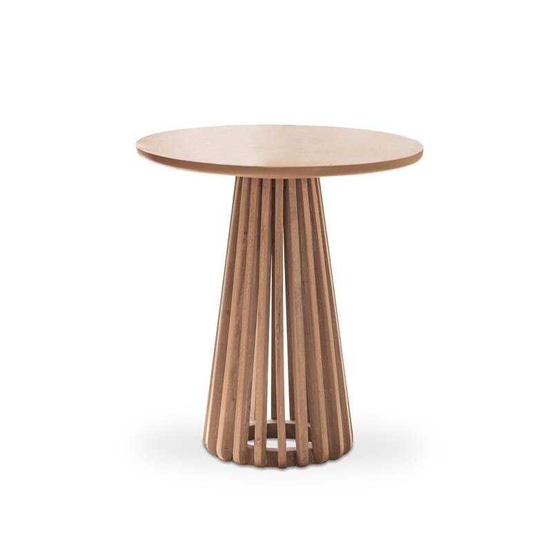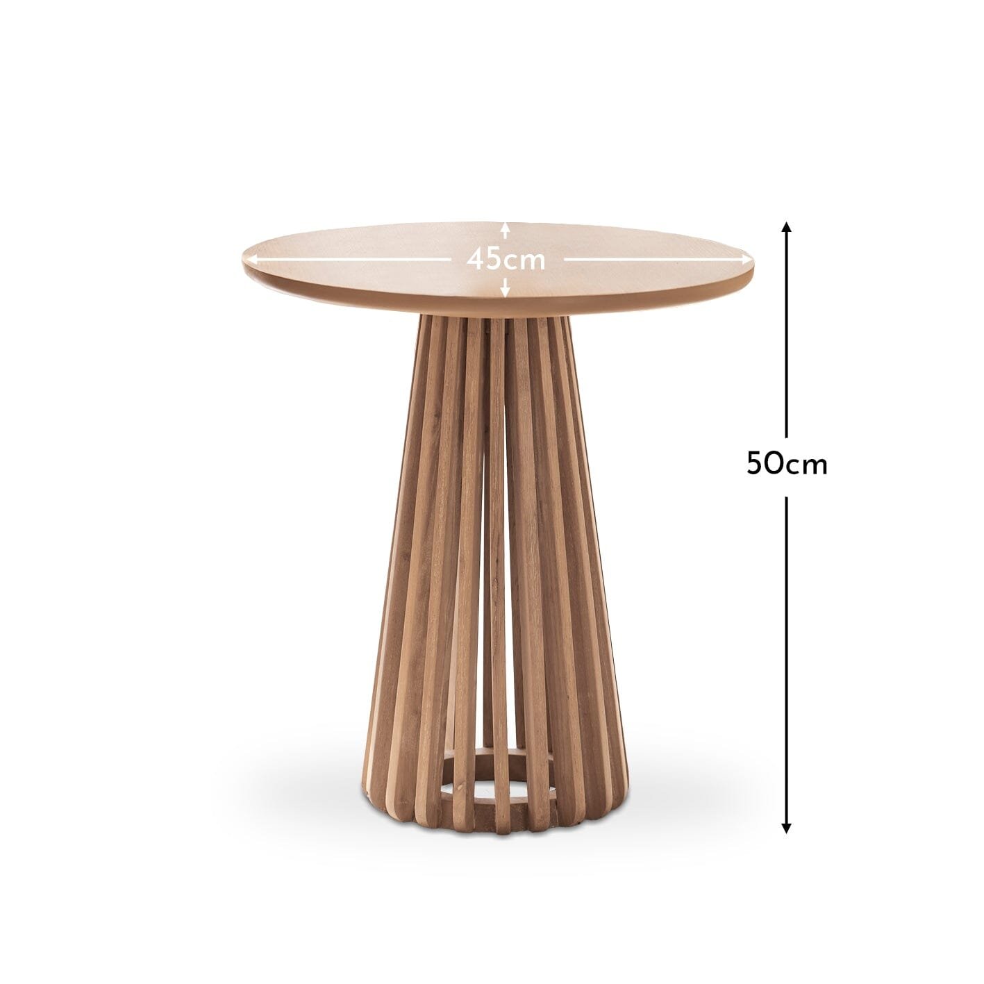 From the much-loved Willow range, in a new colour for 2025, this Willow whitewash wooden side table, is inspired by Japandi interior style. The round tabletop is made from oak veneer the slatted wood pedestal base is made from solid rubberwood, creating a uniquely stylish and practical furniture piece for your living room or bedroom.