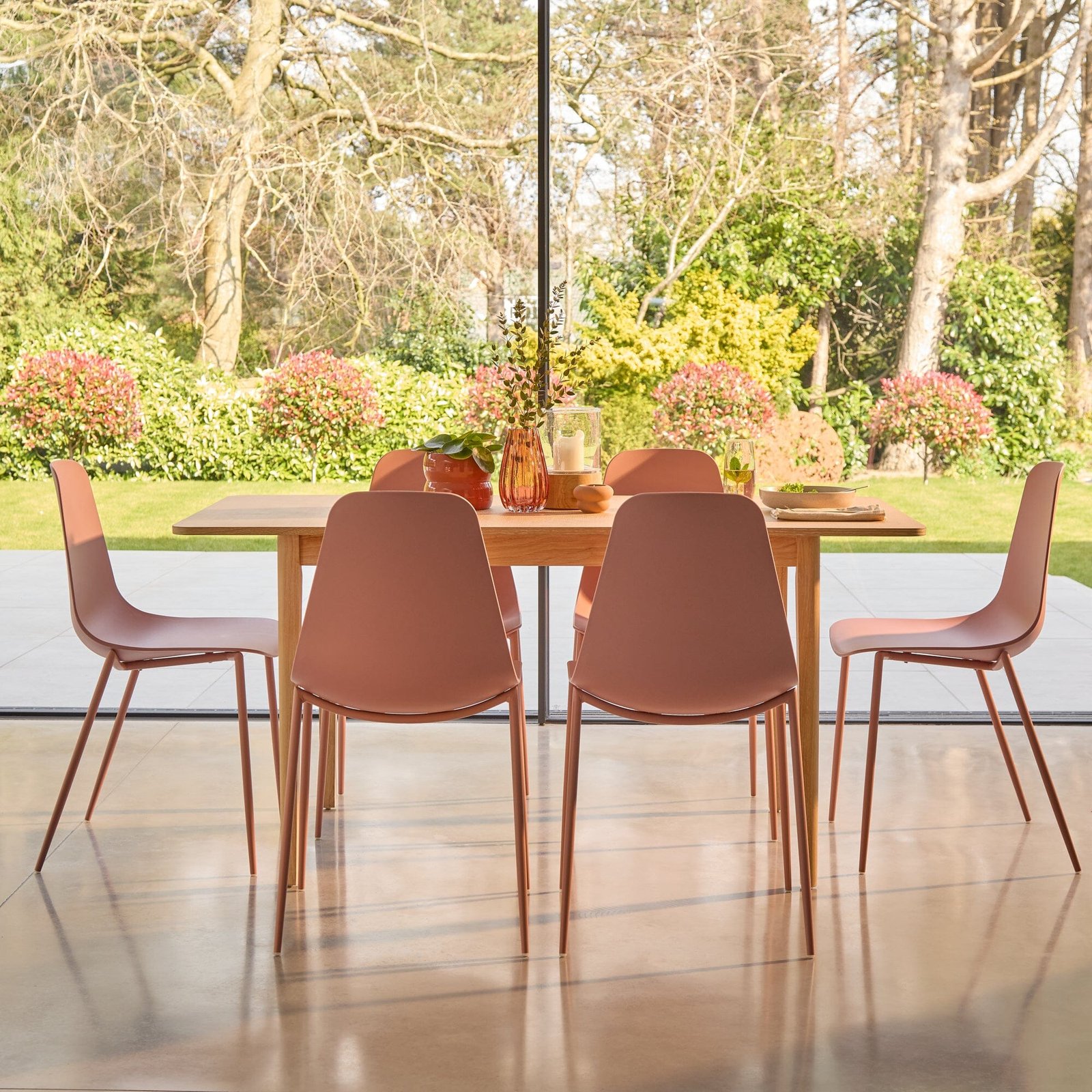 - Chair design features – Modern dining chair in a stand out dusty pink colourway suitable for indoor & outdoor use.